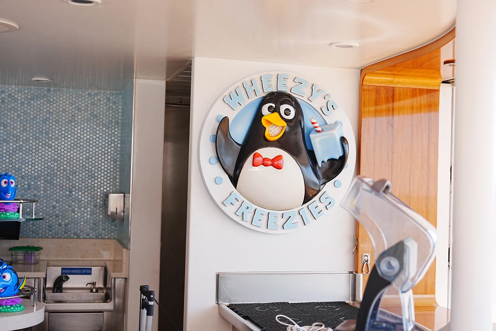 Water play area for families with young children. Features Toy Story characters as rubber bath toys.Wheezies Freezies