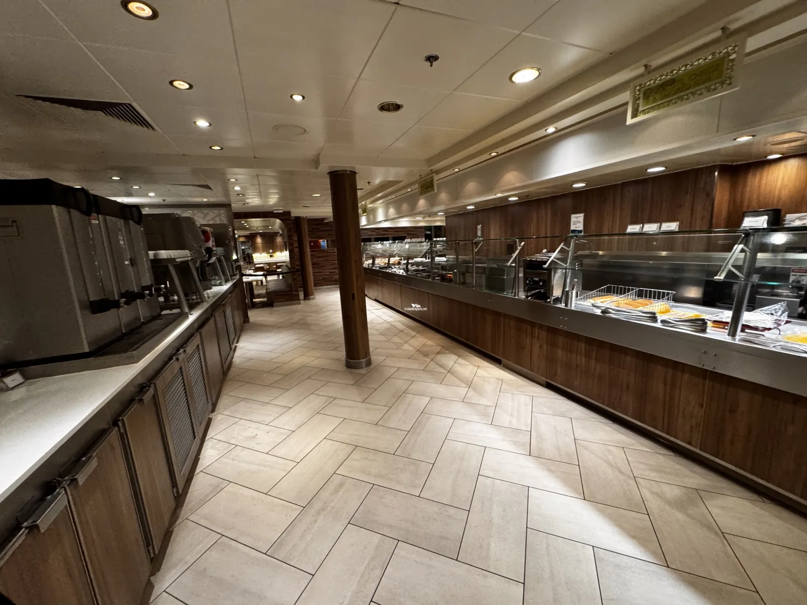 The ship's buffet restaurant offering a family-friendly menu, serving breakfast, lunch, and dinner.Topsiders Bar and Grill