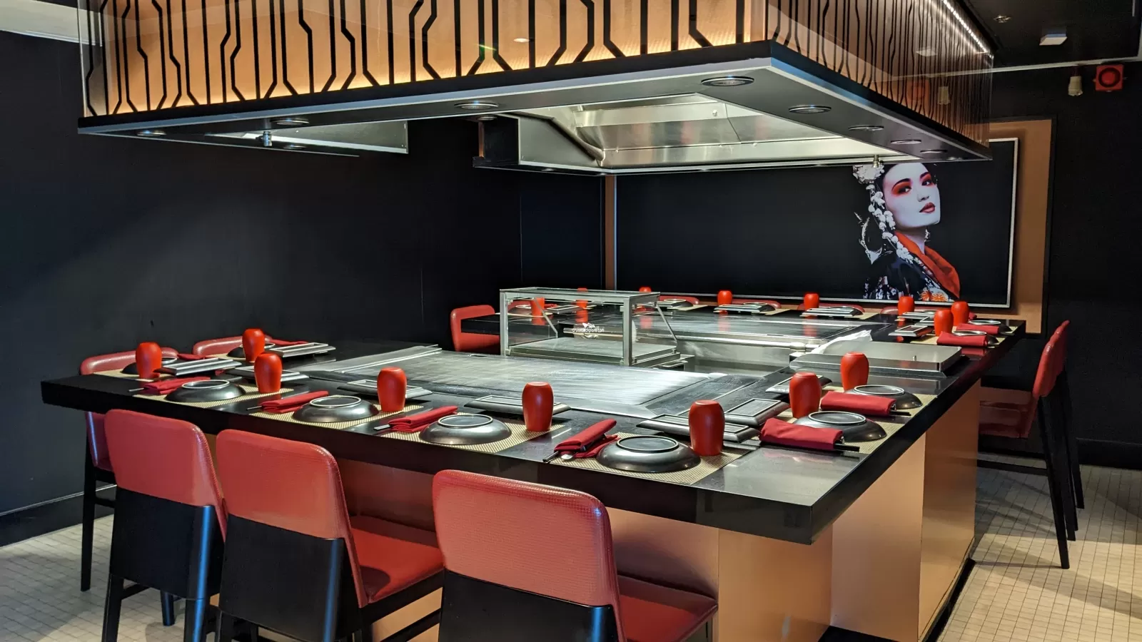 The Sushi Bar serves Japanese sushi and sashimi expertly prepared as you watch and seats 47 guests. It is open from 12.00pm to 2.30pm for lunch and 5.30pm to 10.30pm for dinner.Teppanyaki