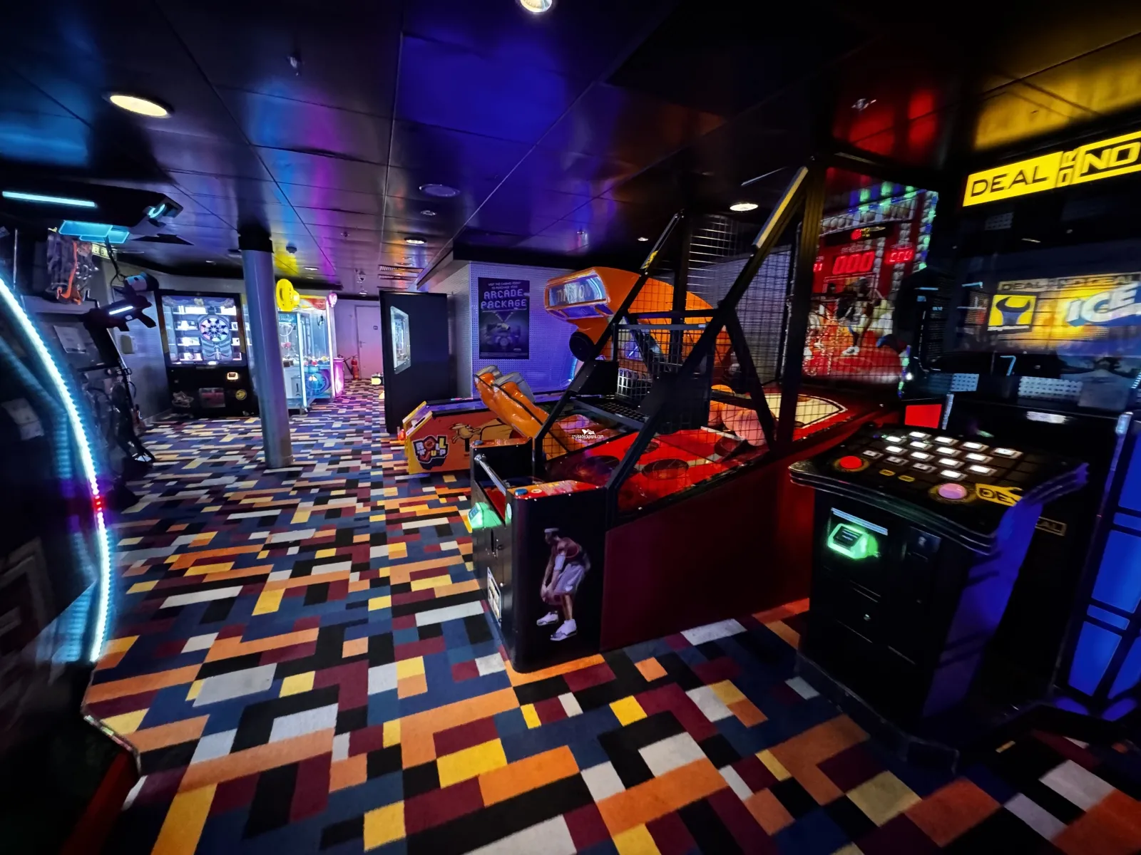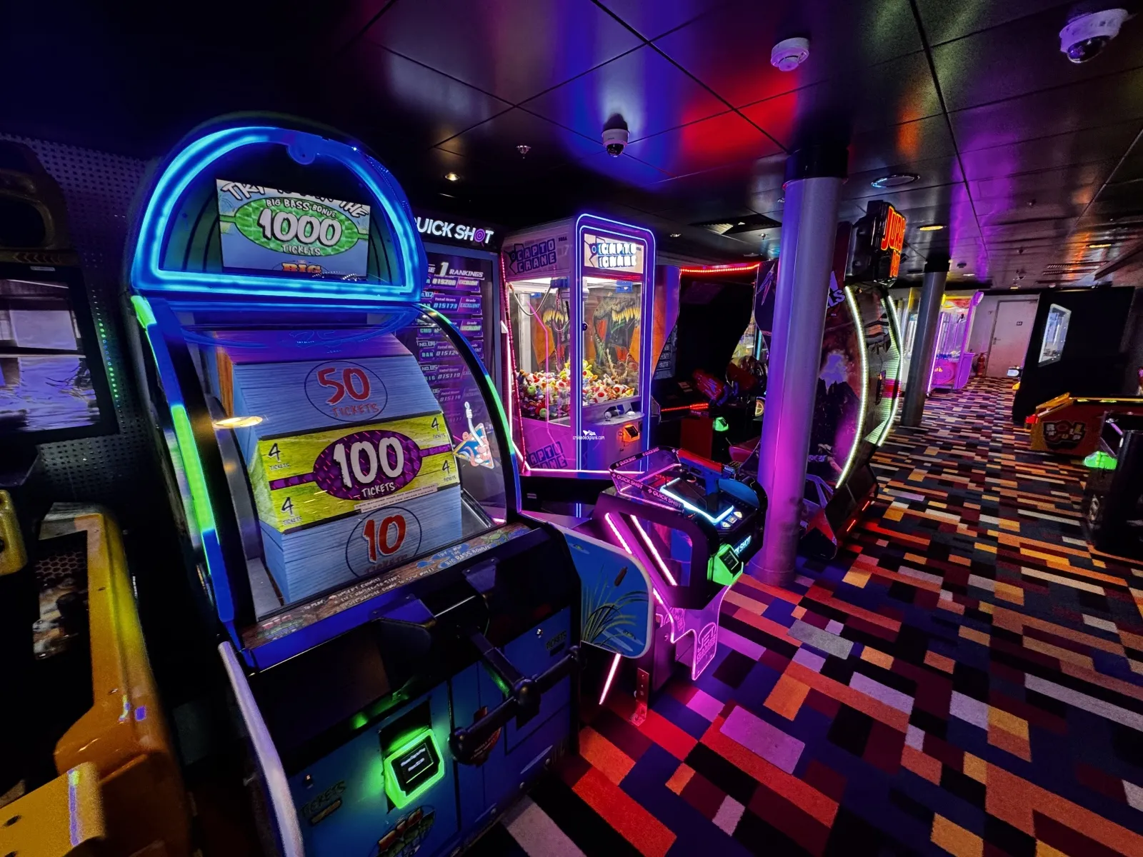 Stadium seating and lounge area around the pool that spans deck 12 and deck 13.Deck Games