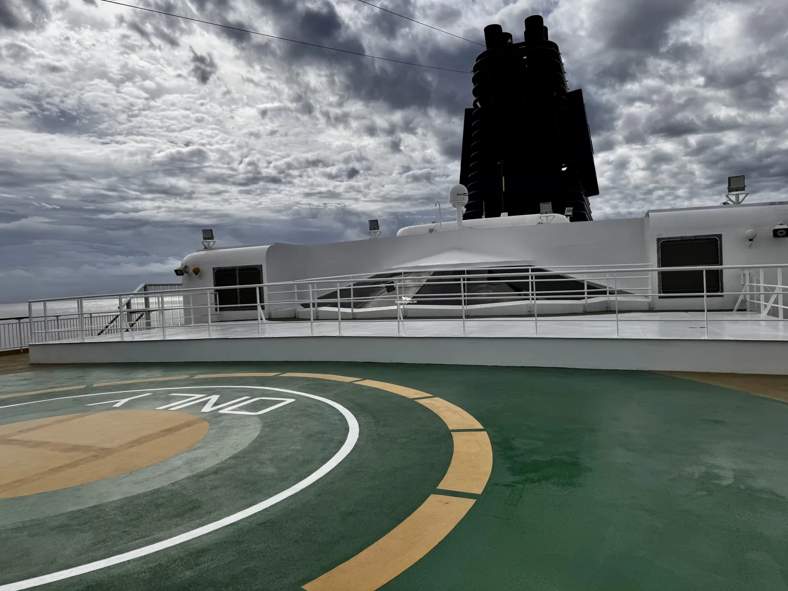 Sun Deck located in aft of ship on deck 14. Deck also serves as a Helicopter Pad.Deck 14 Walk Way