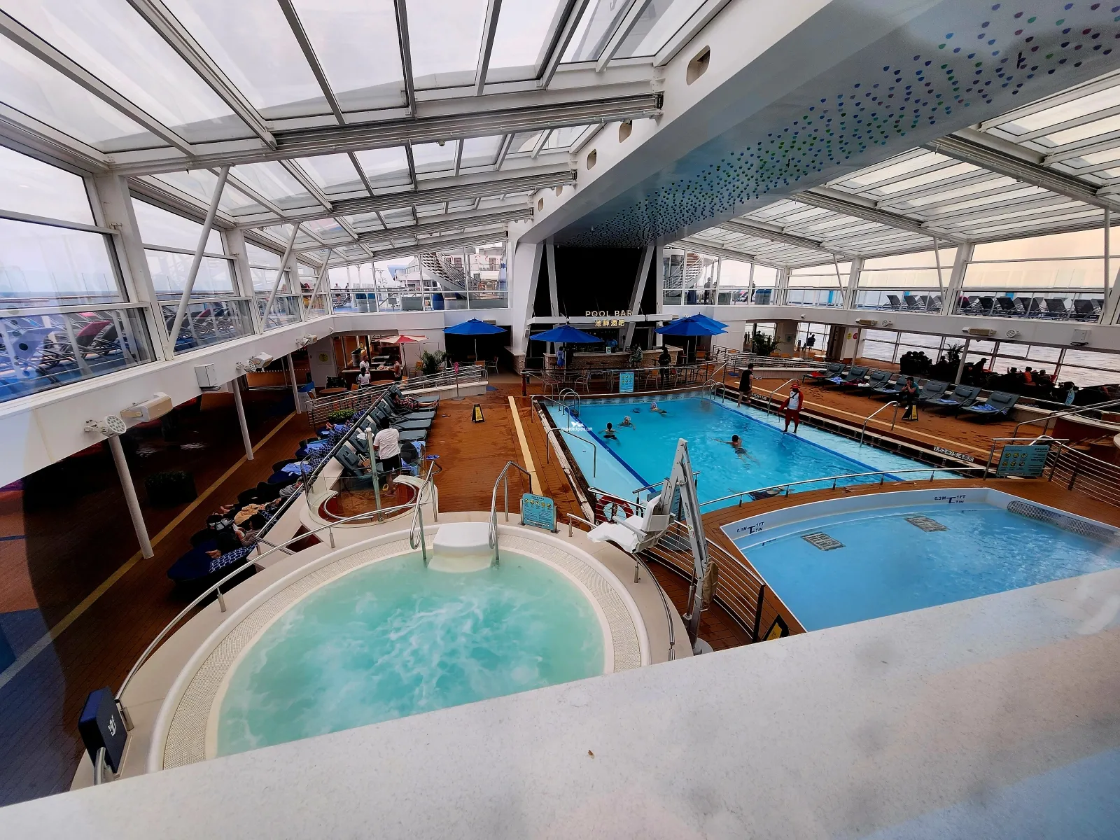 Indoor pool located outside of the Solarium. Area provides 2 whirlpools, large swimming pool, glass encloser, and pool bar.Silver Lounge