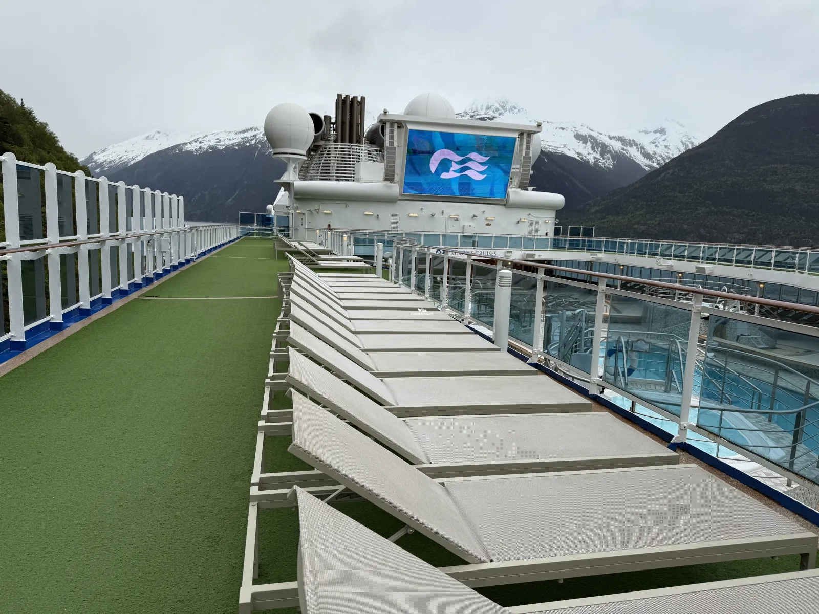 The ship's outdoor giant screen showing movies, concerts and sporting events.The Bar & Grill