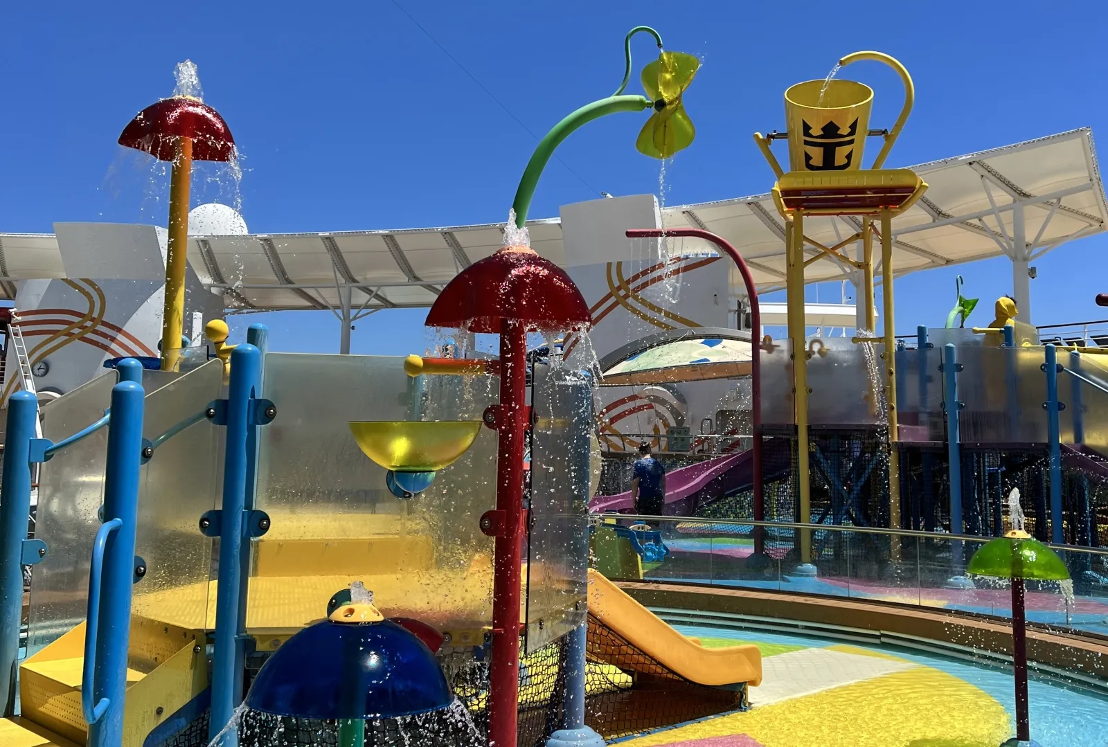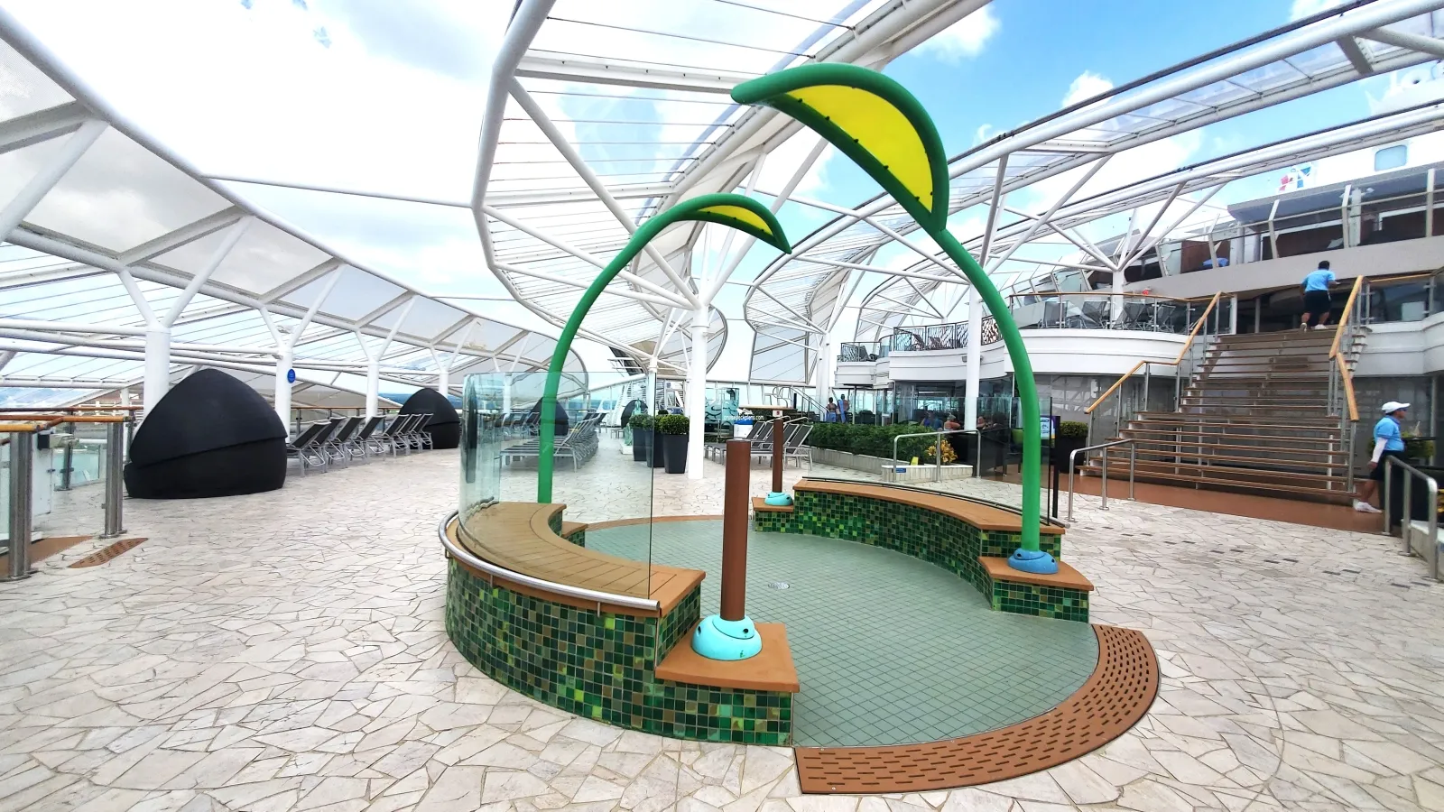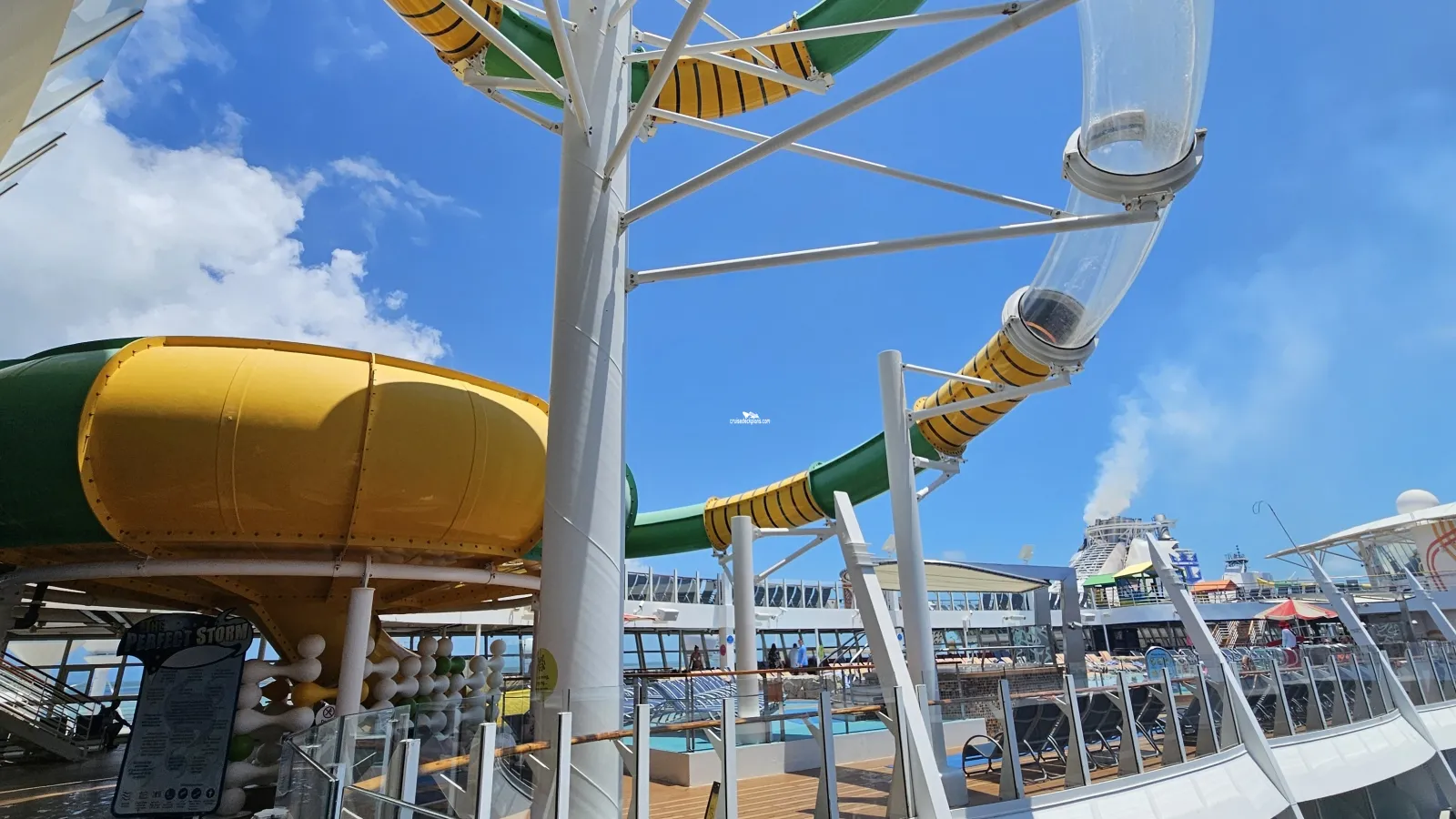 Three multi-story waterslides, all of which twist and turn over Central Park 10 decks below. Access from deck 18, exit on deck 15.Splashaway Bay