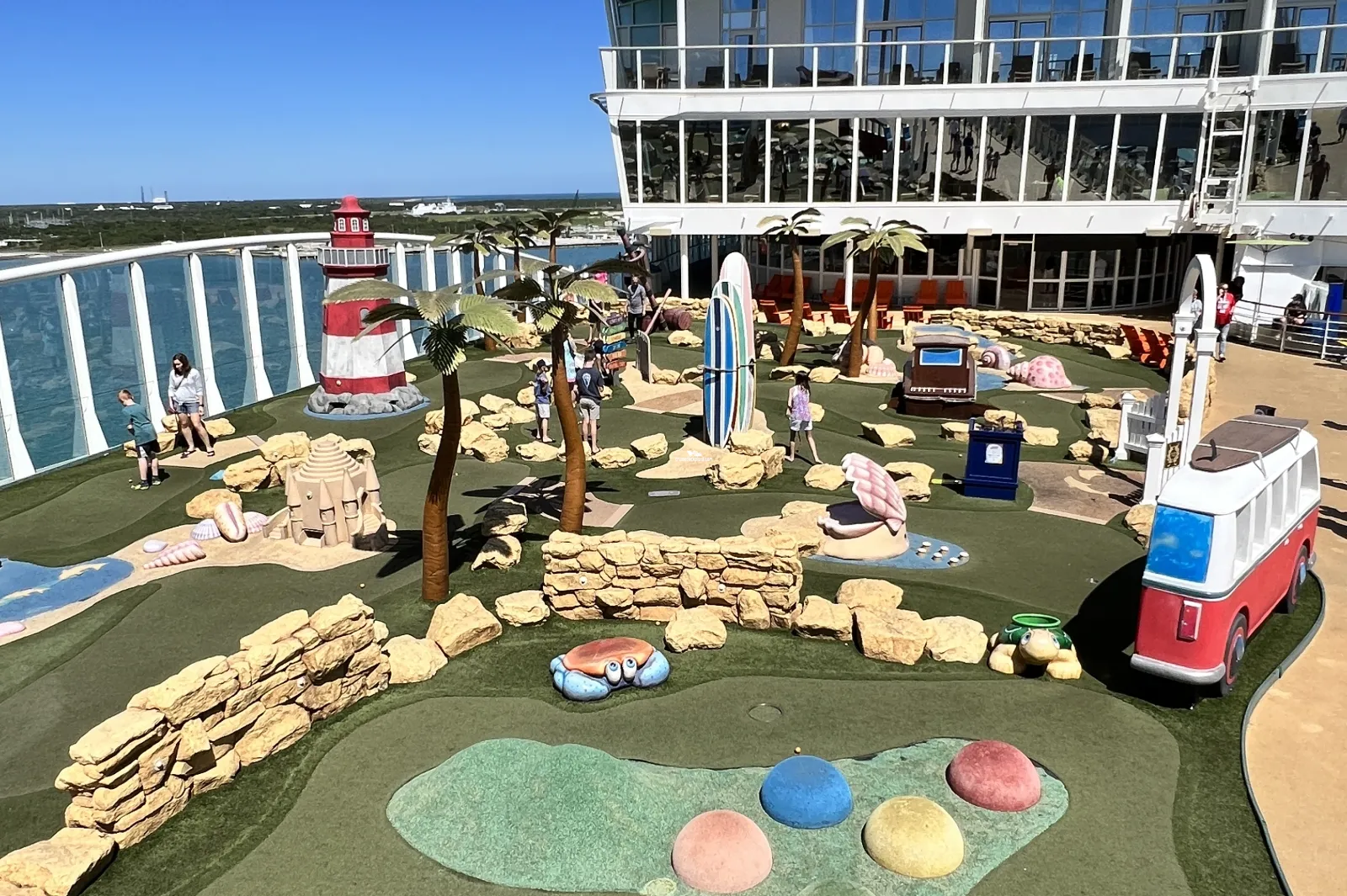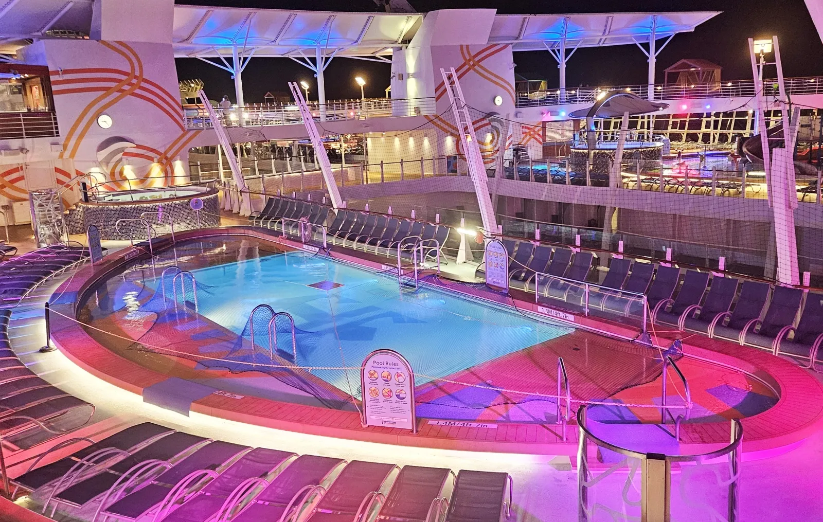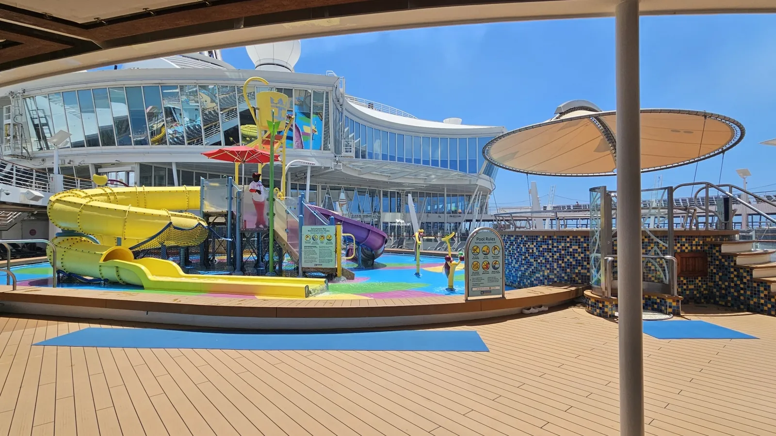 Three multi-story waterslides, all of which twist and turn over Central Park 10 decks below. Access from deck 18, exit on deck 15.Splashaway Bay