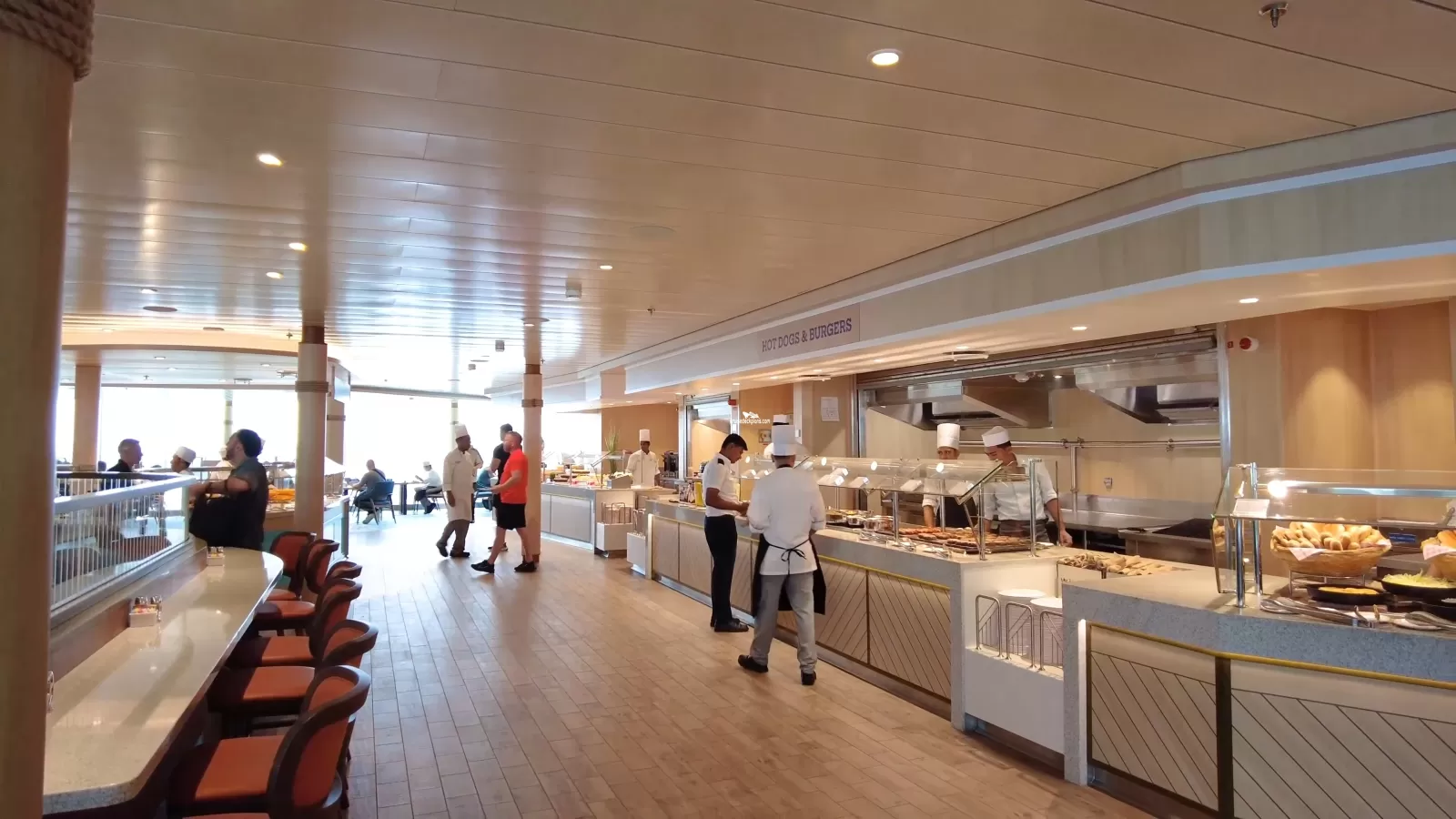 Suspended Adult only Infinity Pool andd dedicated bar. Suspended 8 stories up with aft views. The pool water is only waist high and not designed for swimming. Instead there are tables in the pool that allow you to cool off and drink at the same time. Most of the lounge chair seating is in the sun.Rye and Bean
