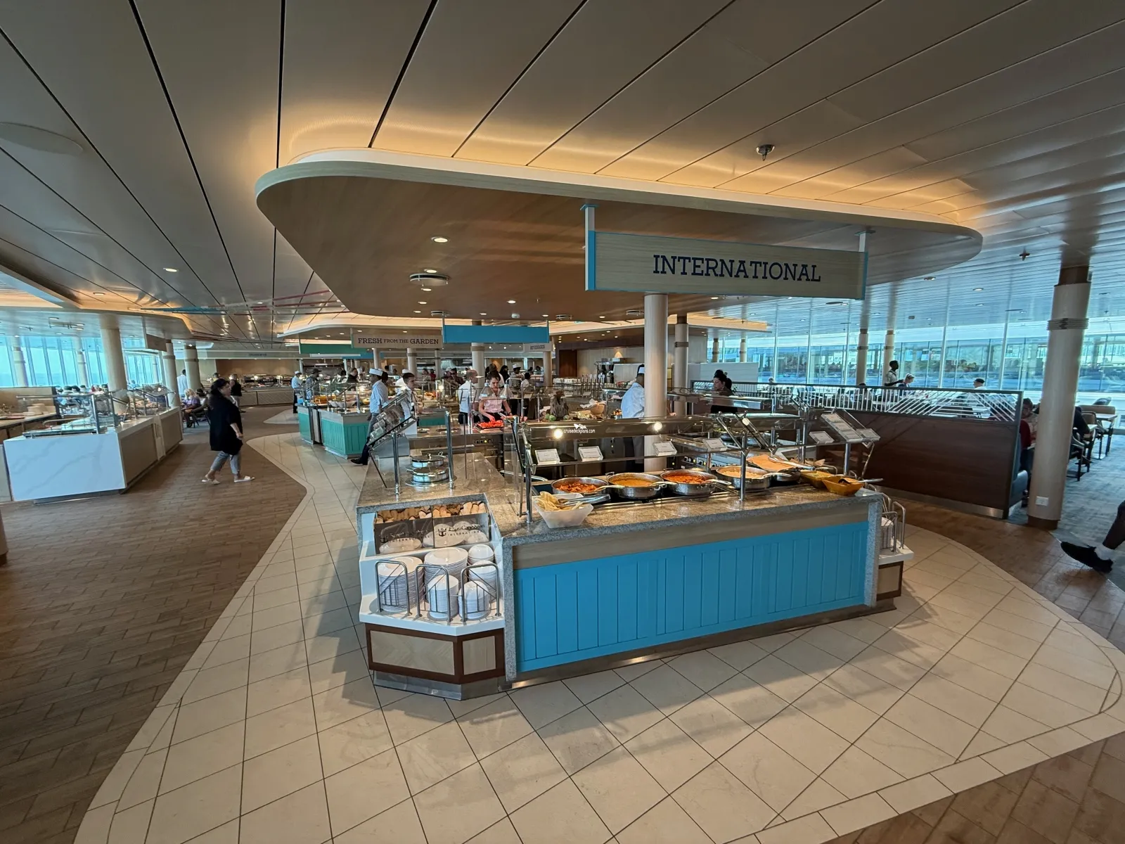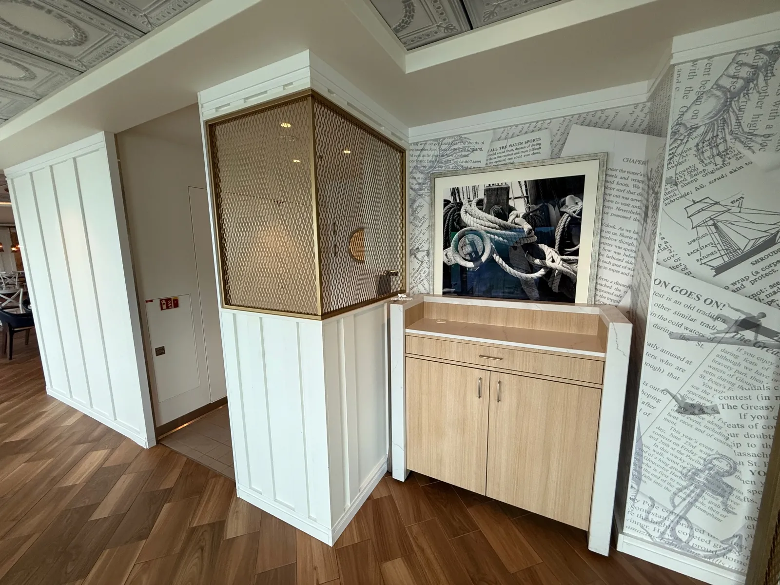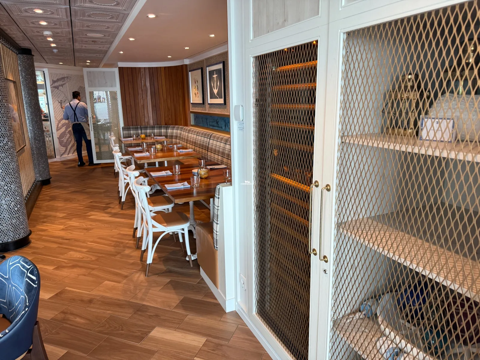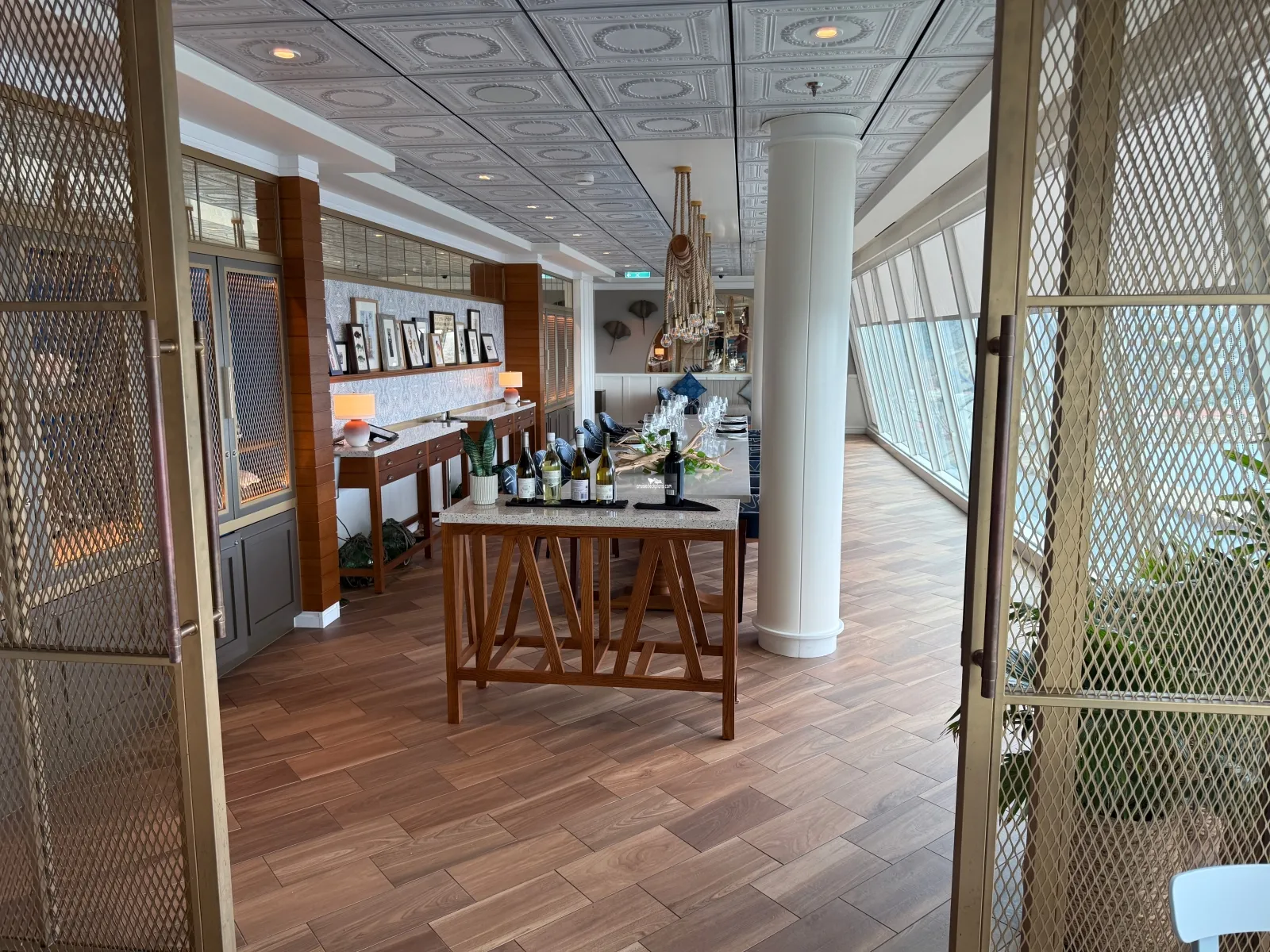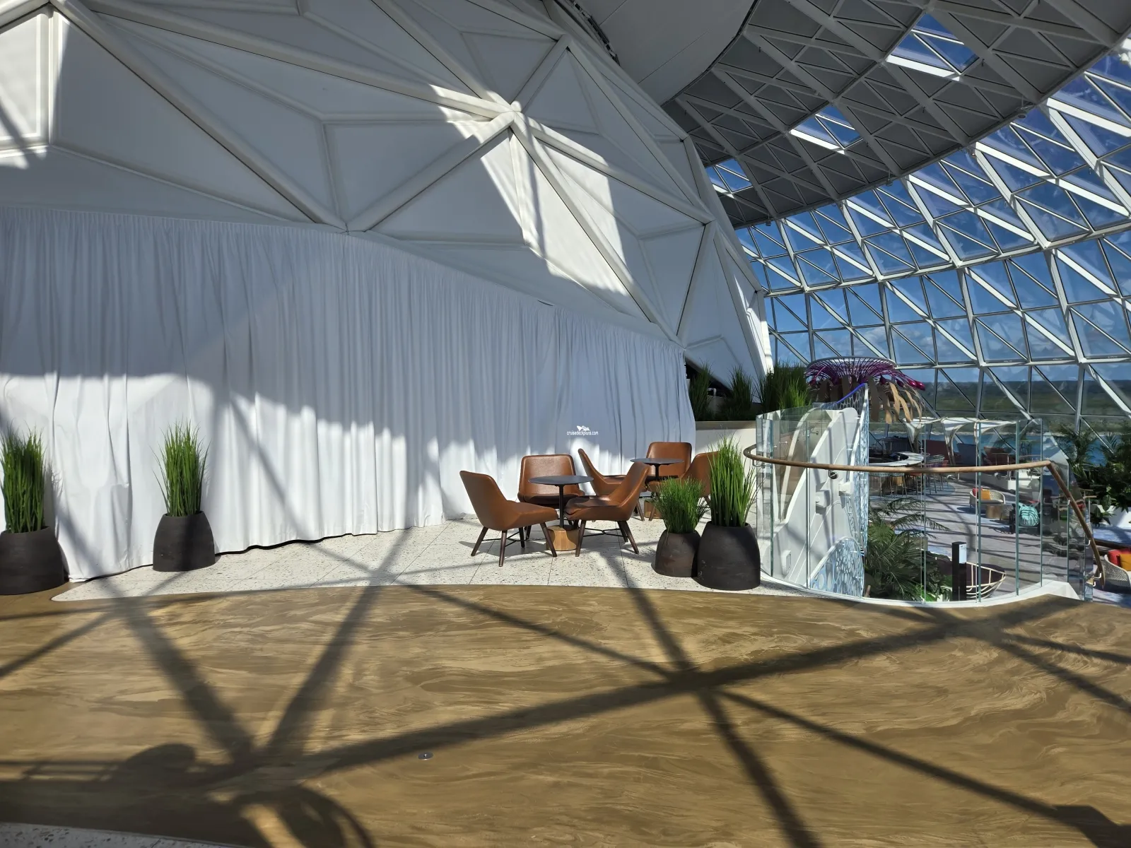Pods (elevated seating areas) at various levels where you can enjoy the wraparound ocean views in the front of the AquaDome. Open day and night. Teens often take over this area at night.Celebration Table