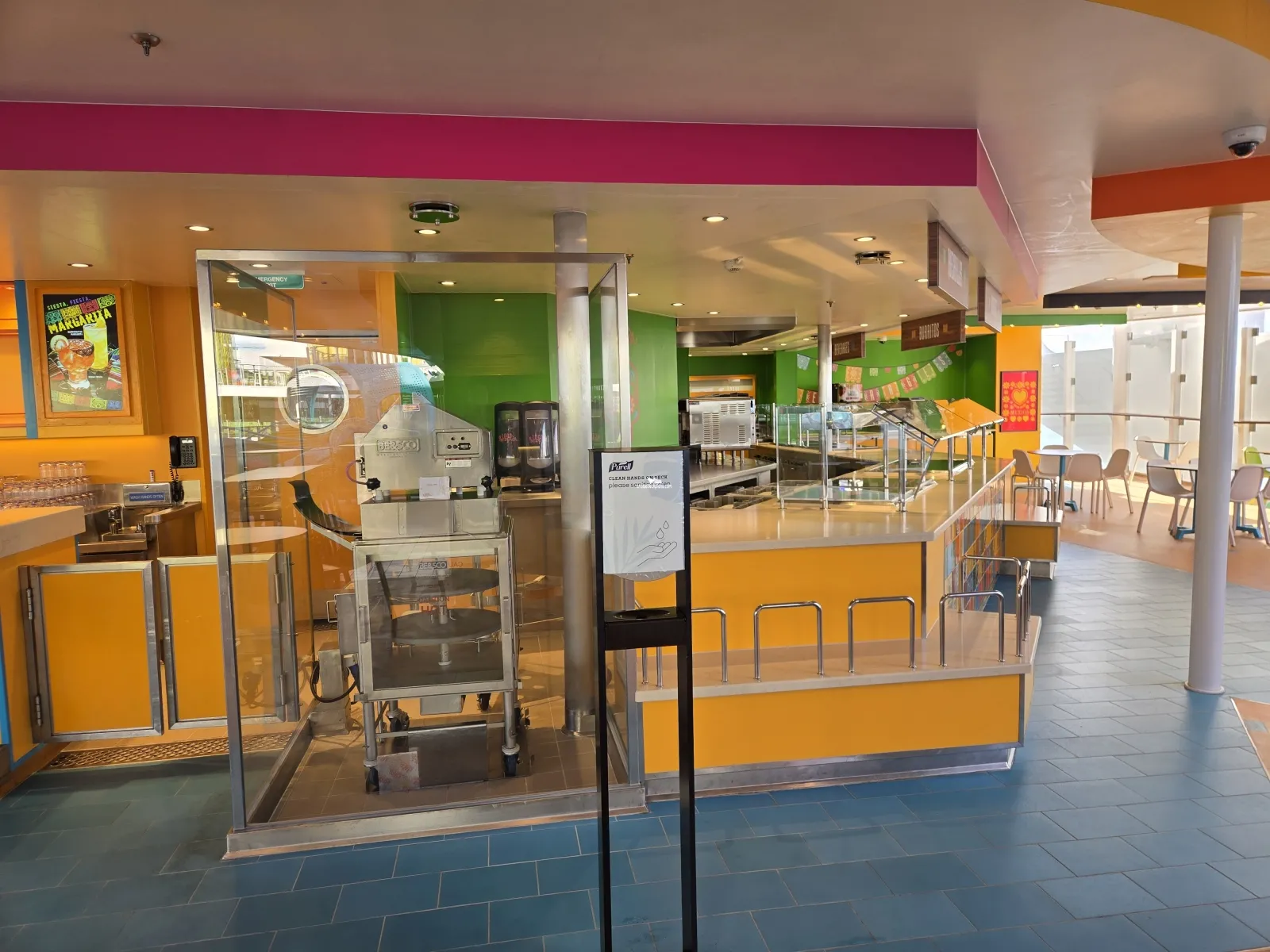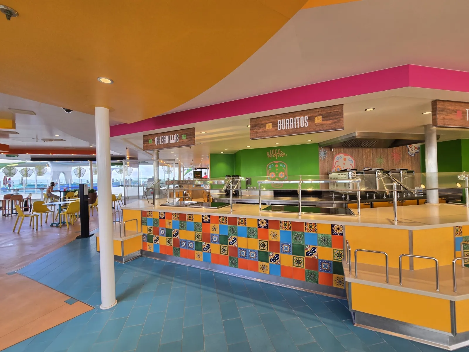 Outdoor eatery. Cantina Fresca and El Loco Fresh. Fast serve mexican buffet style dining. With classic mole sauce and tangy salsa verde topping beef burritos, fish tacos, carnitas and more.Lime and Coconut