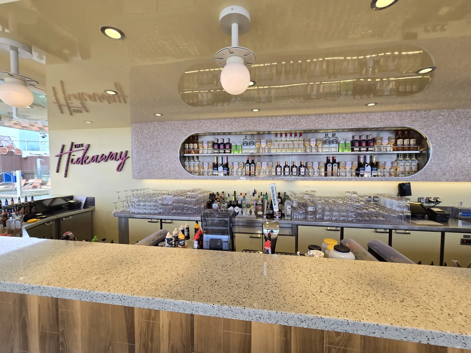 Multi-level and location bar serving outside midship decks.AquaDome