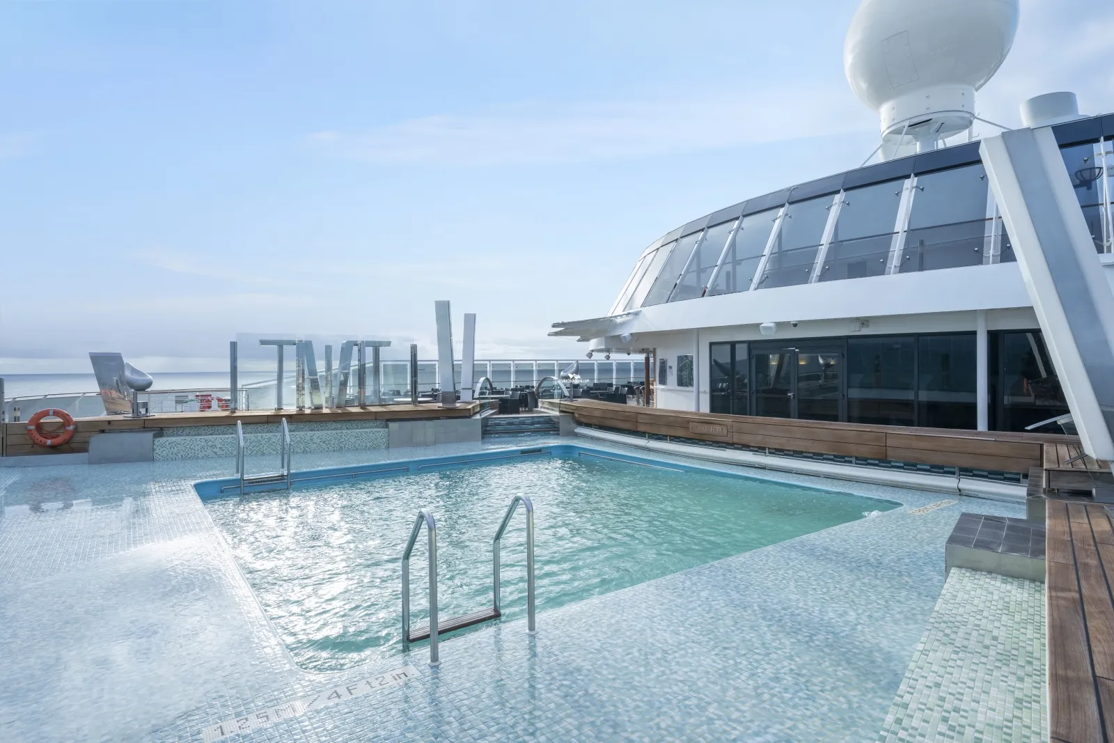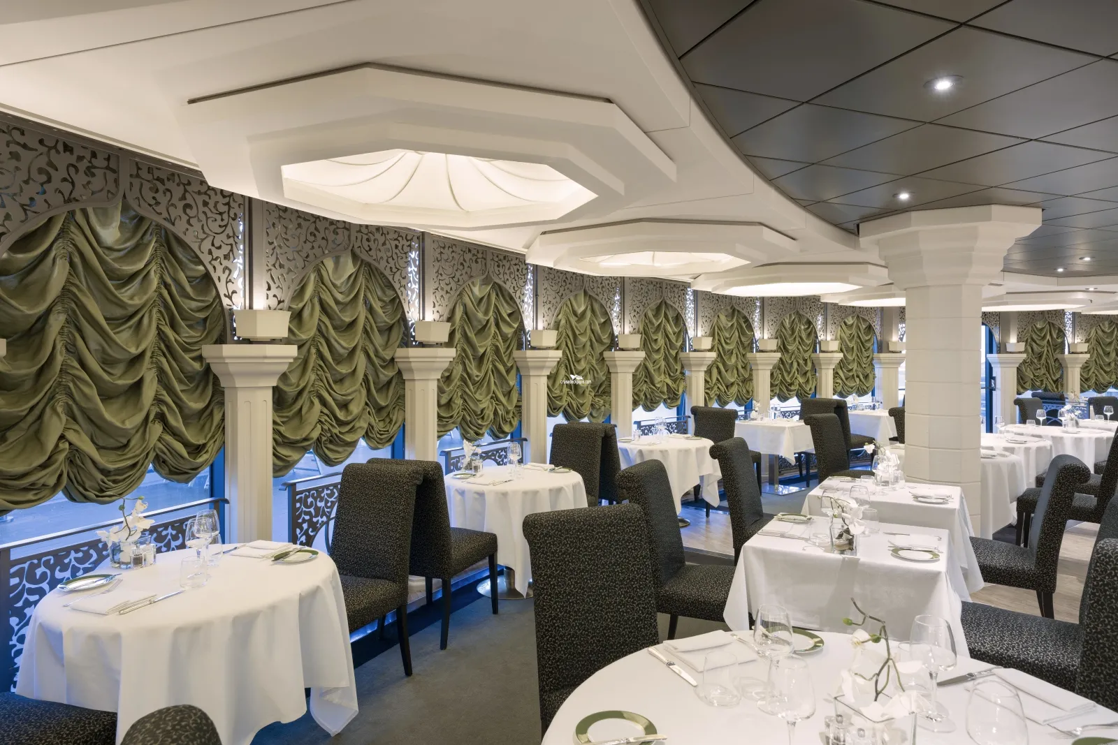 MSC Yacht Club's exclusive gourmet flexible dining restaurant, with seating for 100 guests and panoramic views out over the infinity garden pool.Graffitis