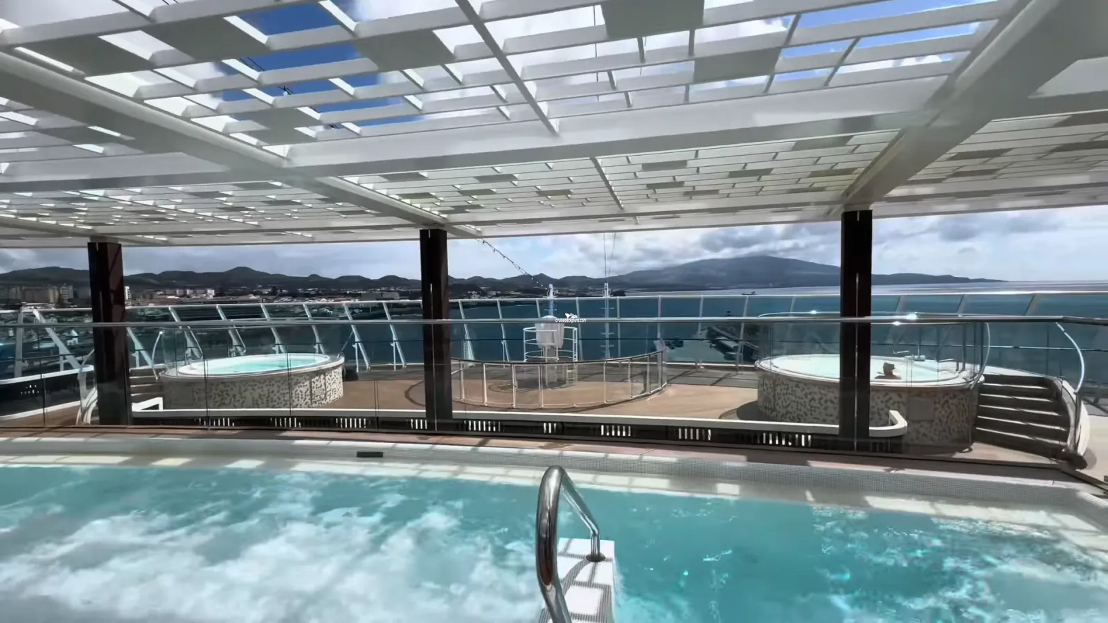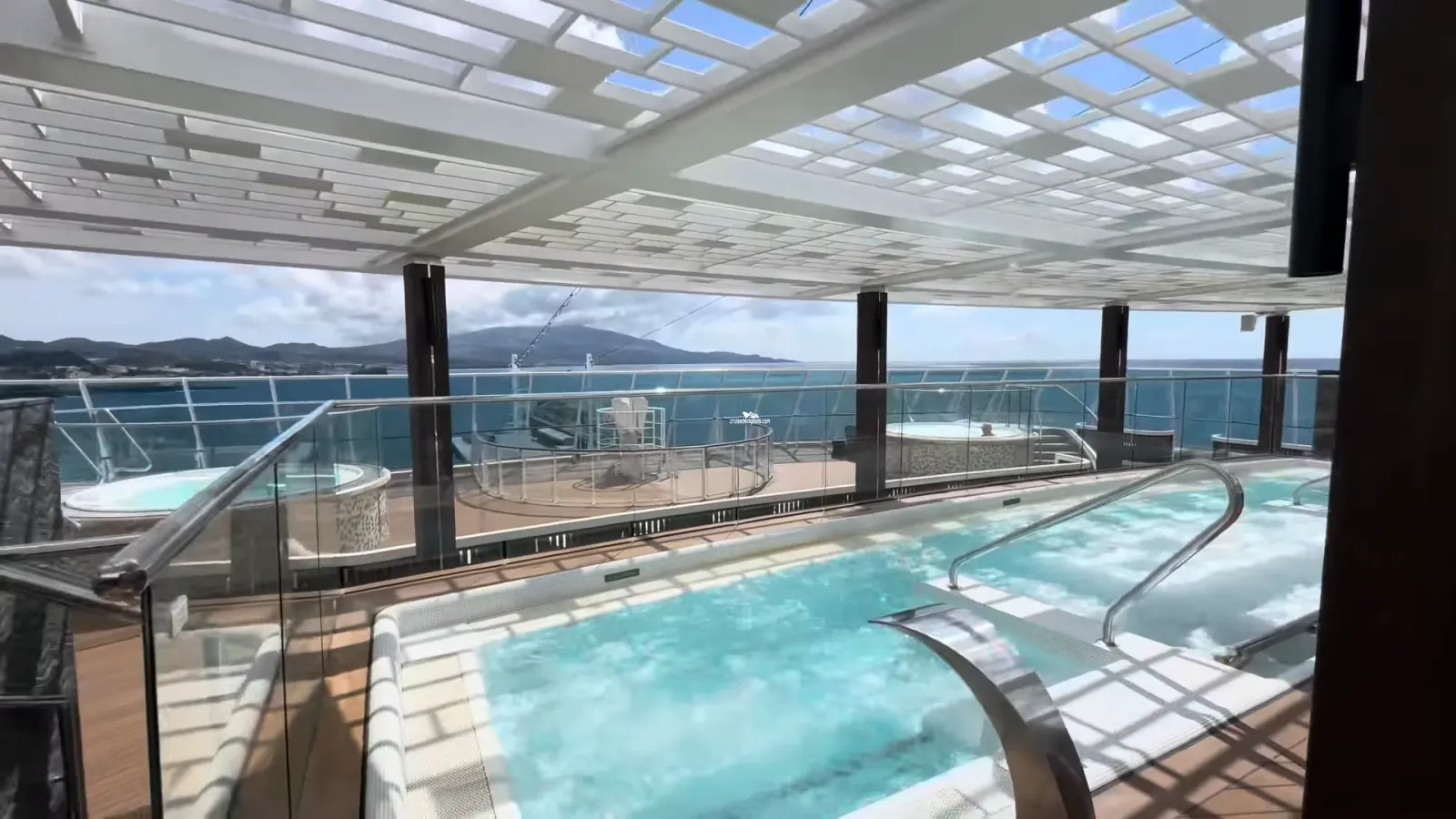 Terrace available to those with spa passes. Has two hot tubs and small pool.Aquamar Spa