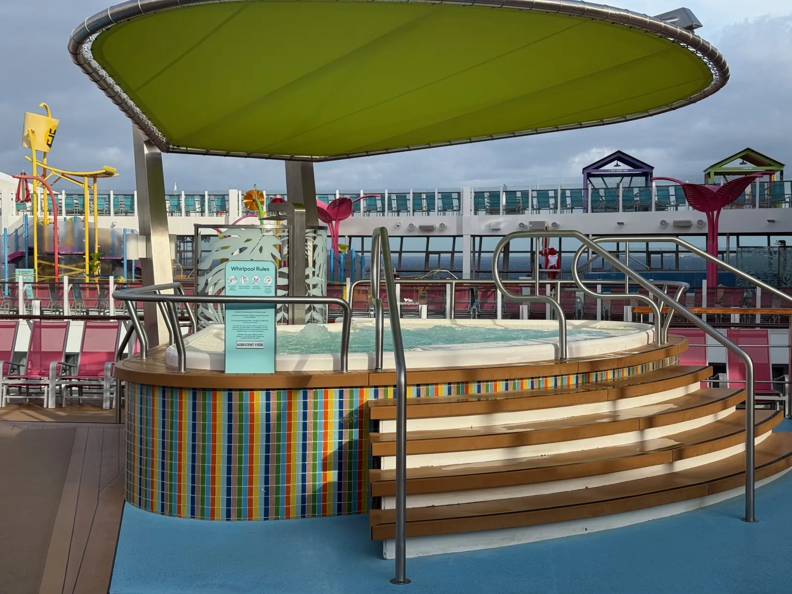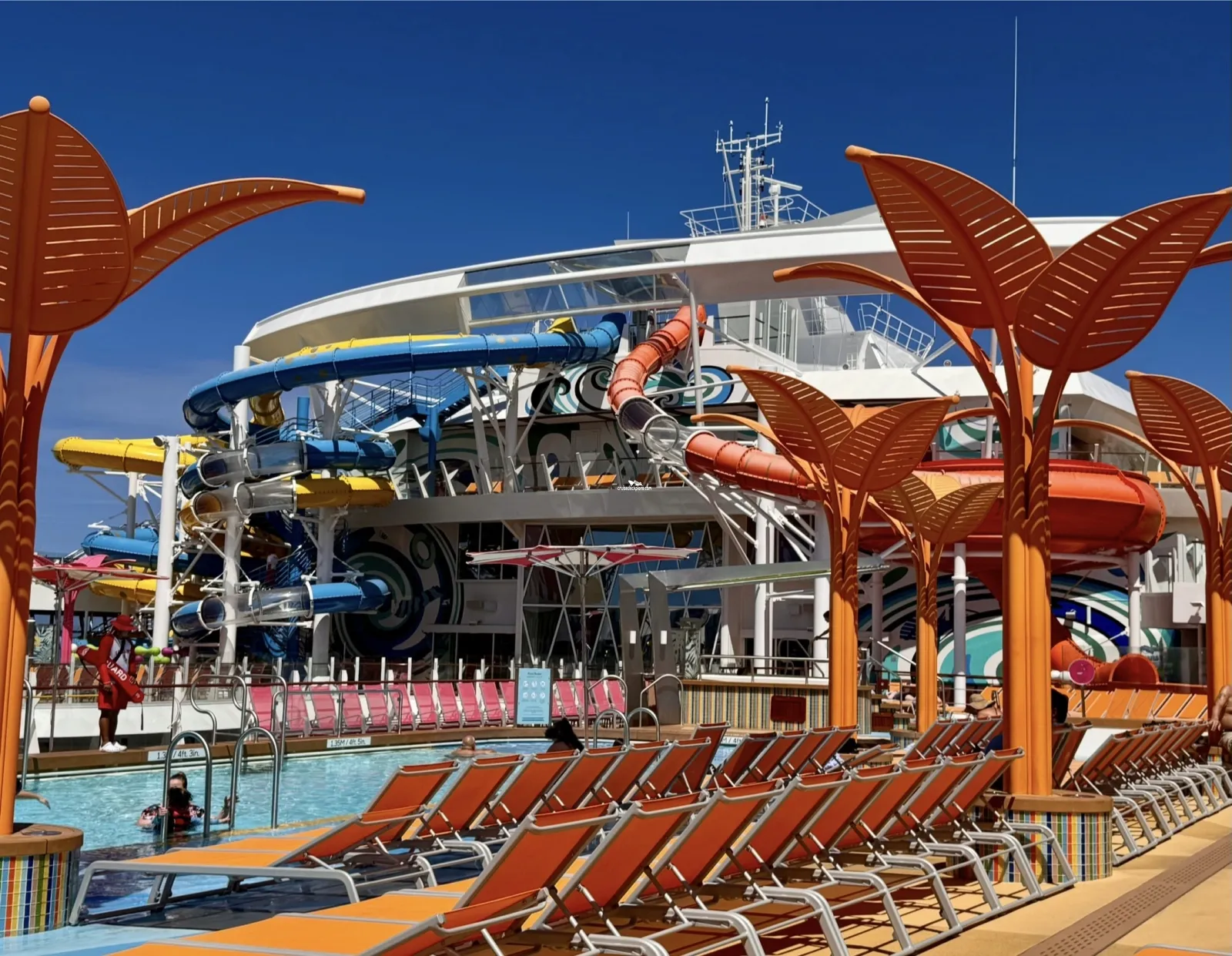 Three multi-story waterslides, all of which twist and turn over Central Park 10 decks below. Exit on deck 15. Port side slide is called The Perfect Storm. Starboard side waterslide is called SupercellSplashaway Bay