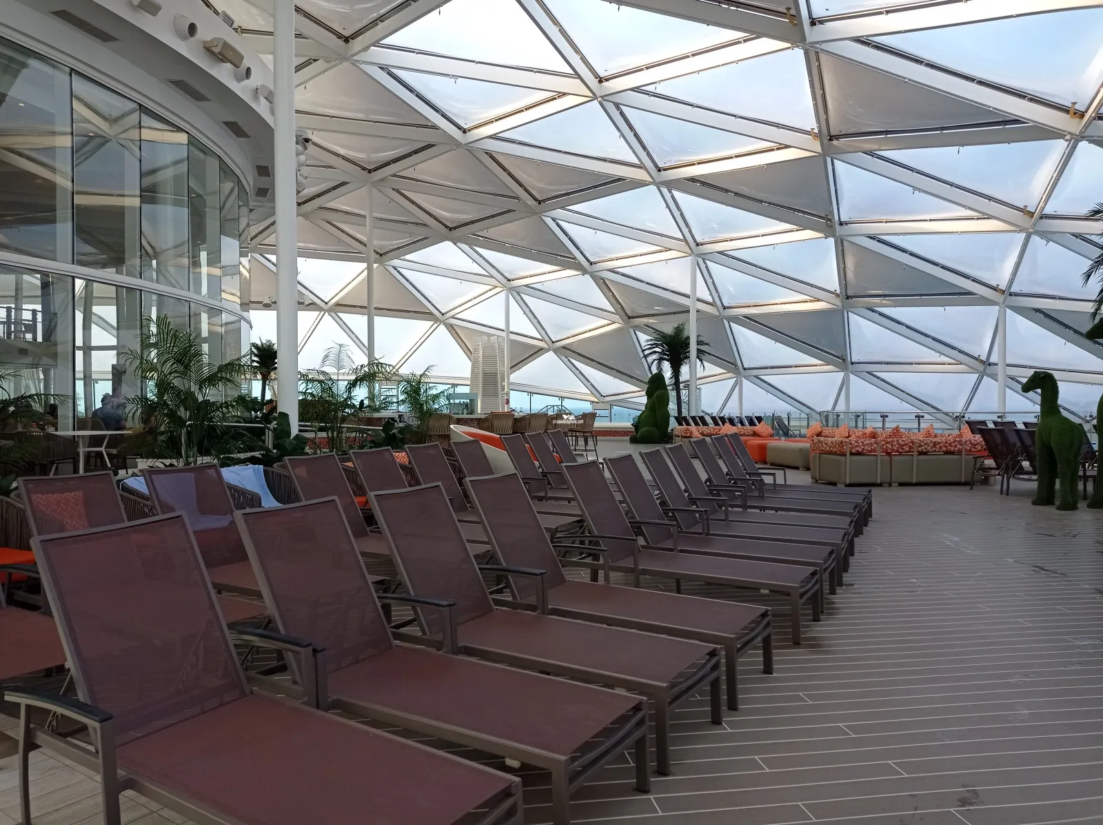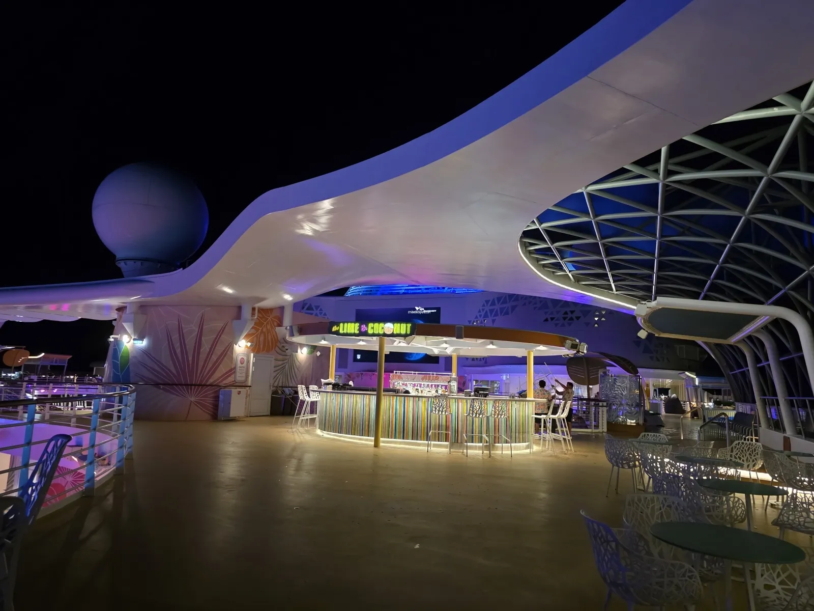 Cocktail bar located on Deck 15 outside the Solarium, this bar offers beautiful panoramic views of the ocean, and at night, the colorful canopy comes to life even more.Lime and Coconut