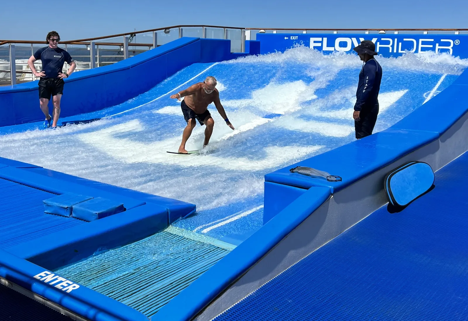 Fly from one end of the Boardwalk to the other on a zip line suspended nine decks in the air. An amazing one-of-a-kind view and a thrilling one-of-a-kind experience.Flowrider