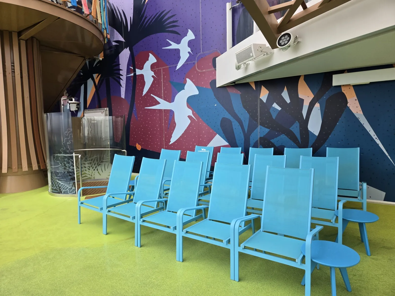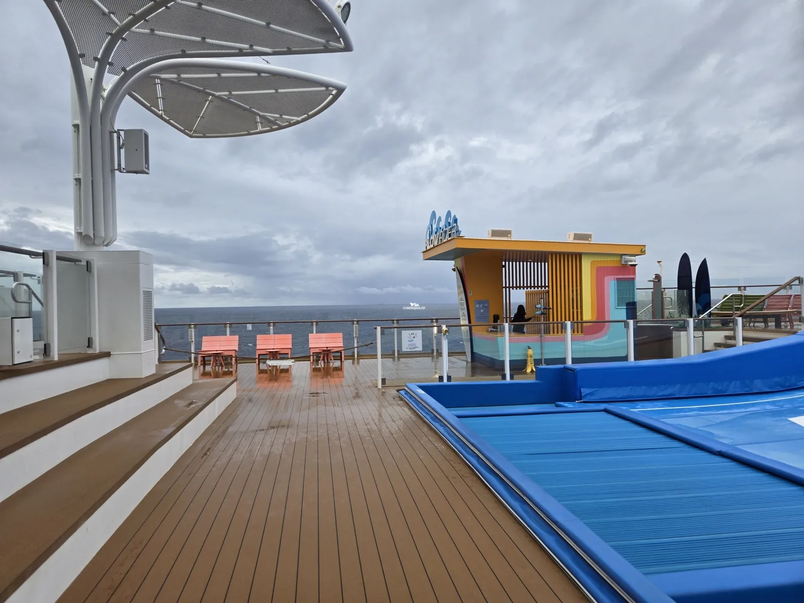 The ships surf simulator where guests can try out boogie boarding or surfing.Chill Island Deck 16