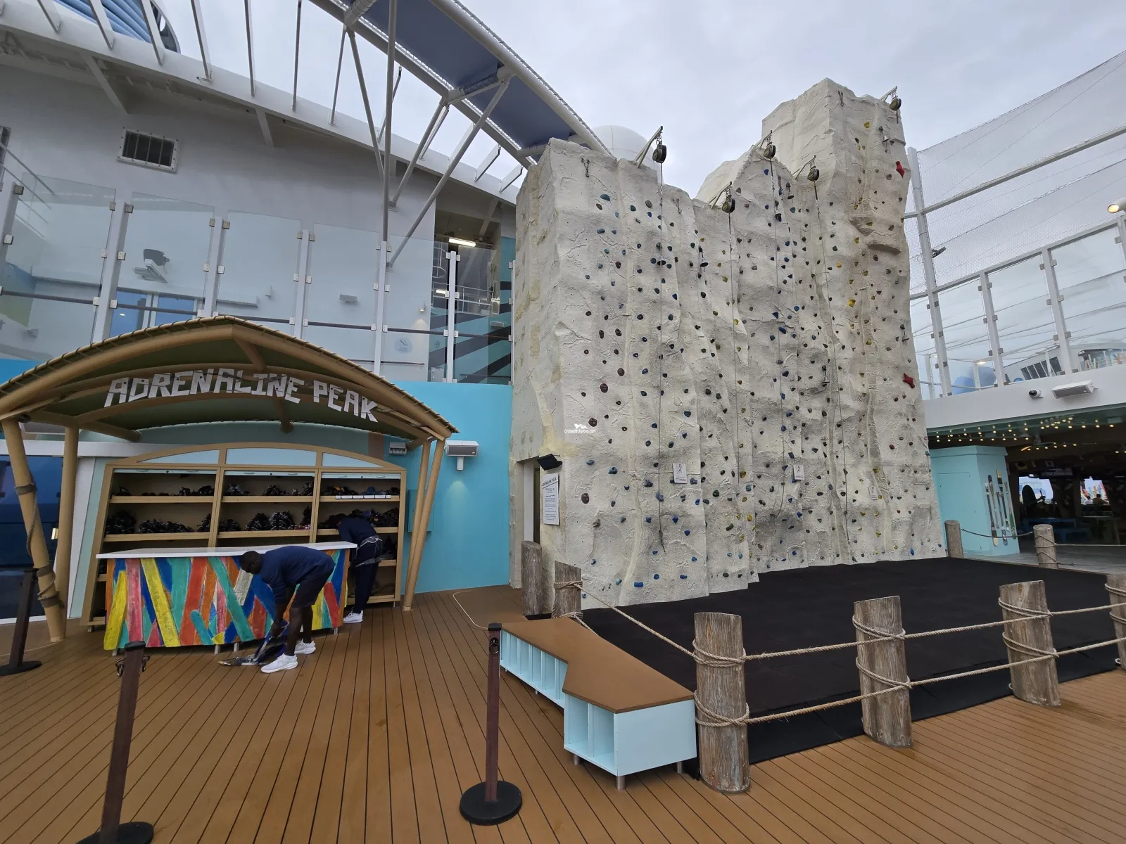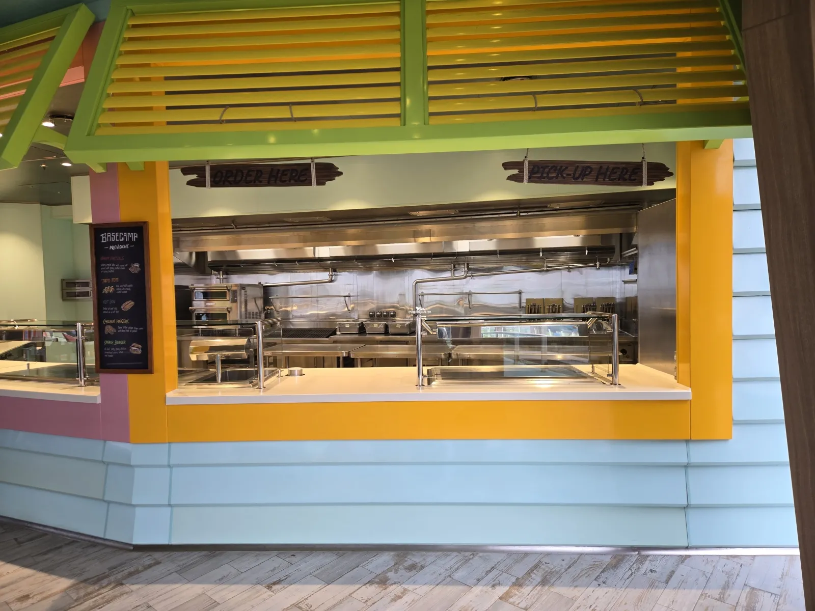 Part skywalk, part ropes course, part thrill ride (zip line), and an all-out test of courage. It is a ropes course-style attraction that goes around the ship's Crown and Anchor logo. Pricing $89 per person.Coastal Kitchen
