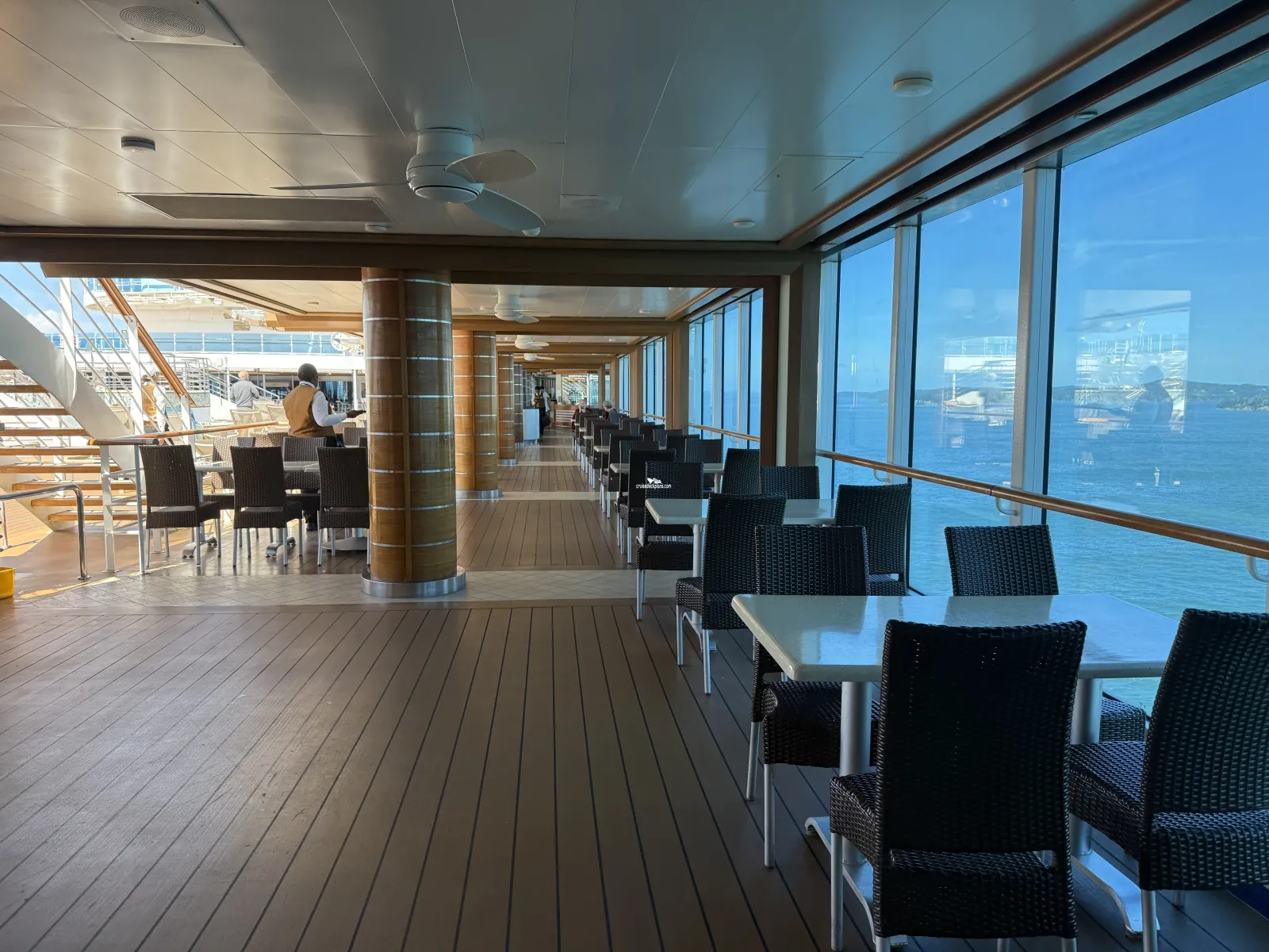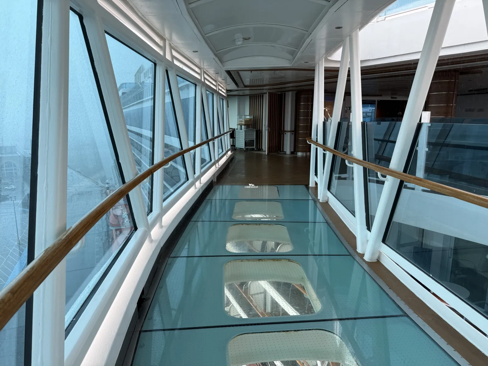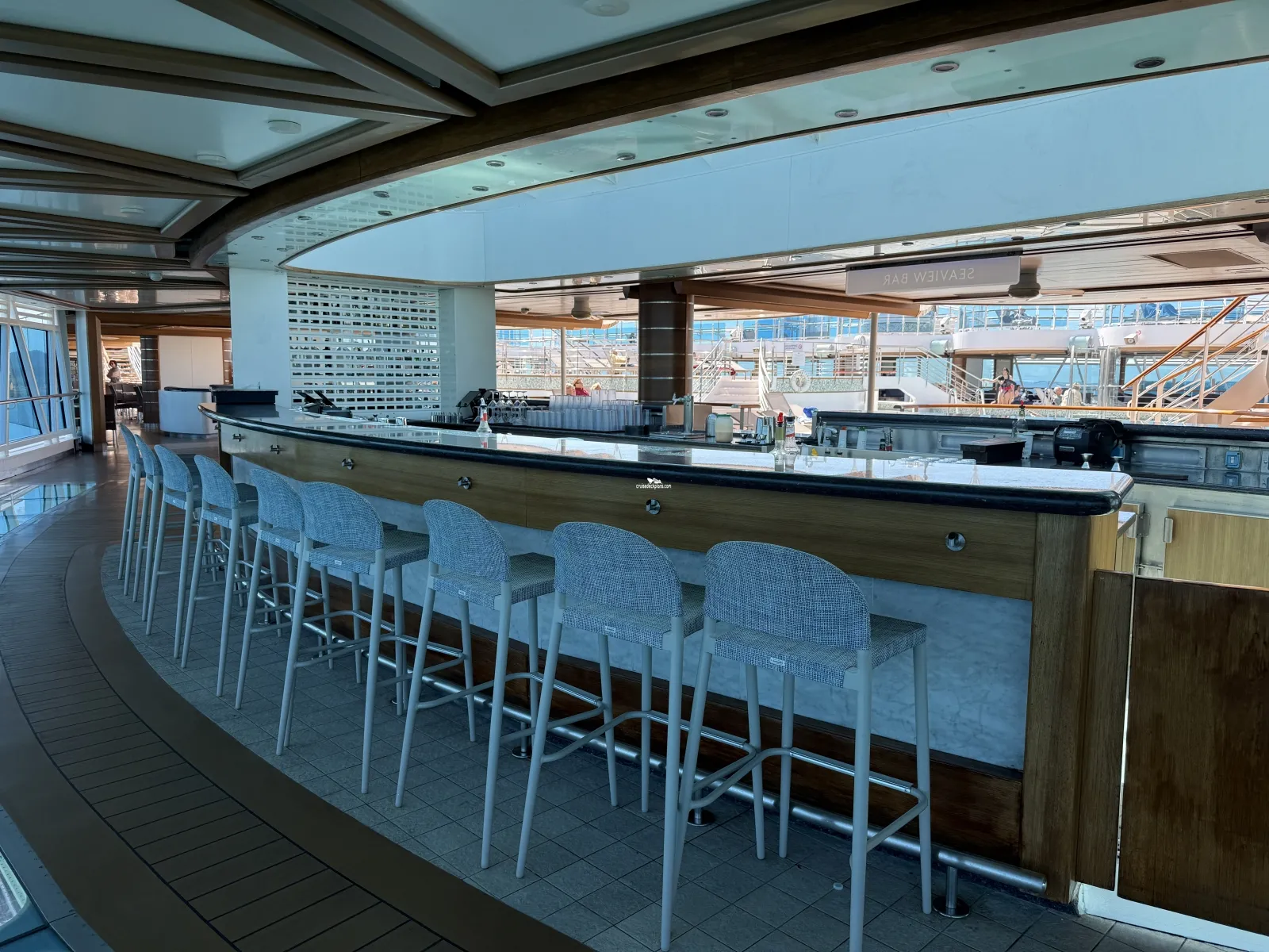 Two level high sea walk that extends out over side of the ship. The first level has a glass floor that allows you to view all the way down to the ocean.Wake View Bar
