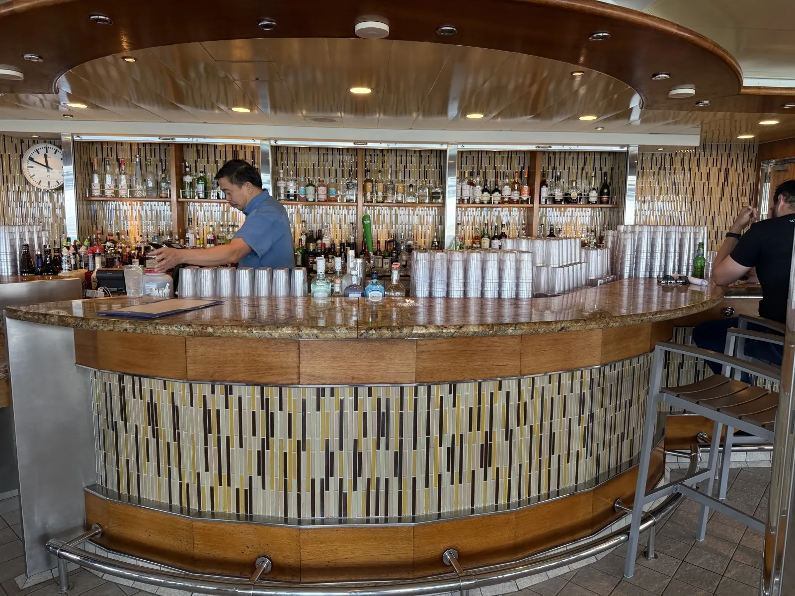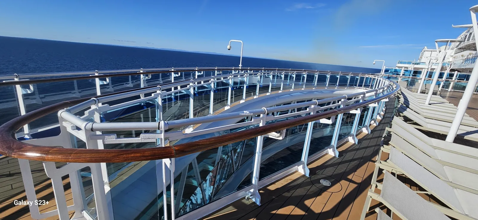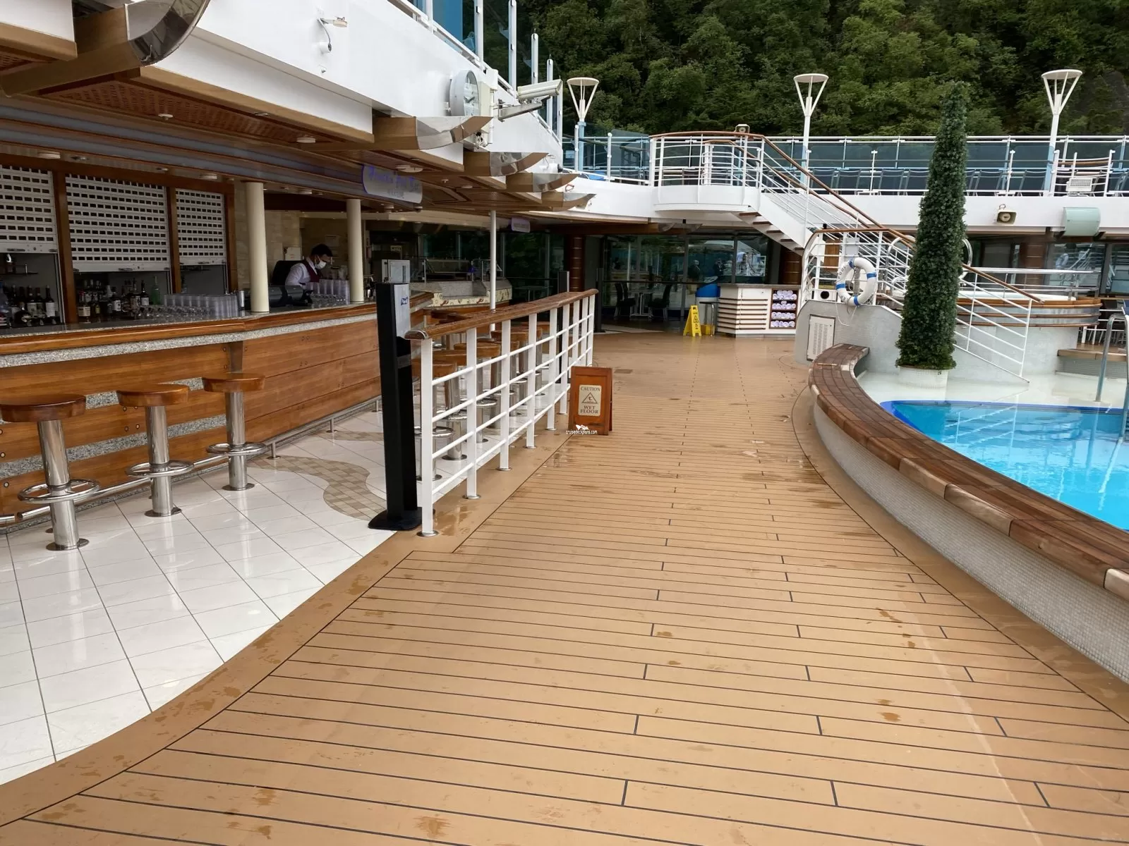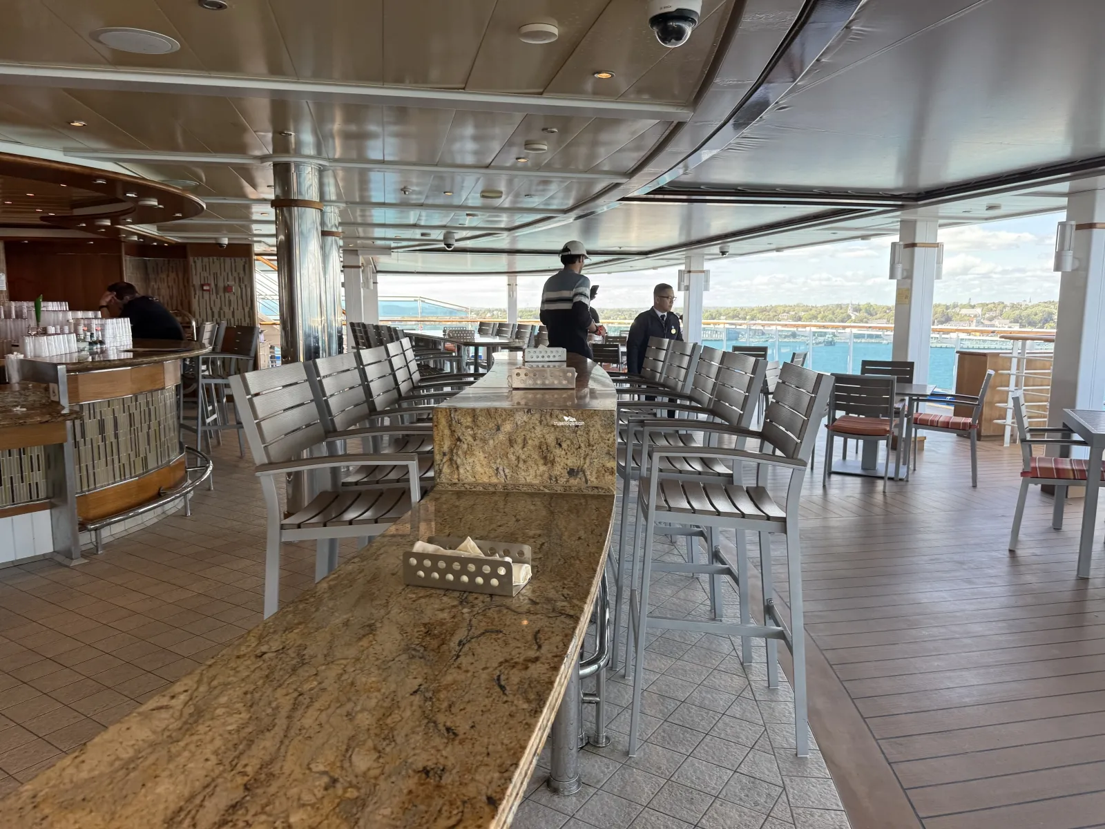 Two level high sea walk that extends out over side of the ship. The first level has a glass floor that allows you to view all the way down to the ocean.Wake View Bar