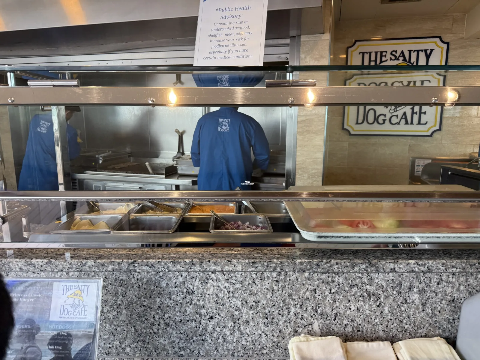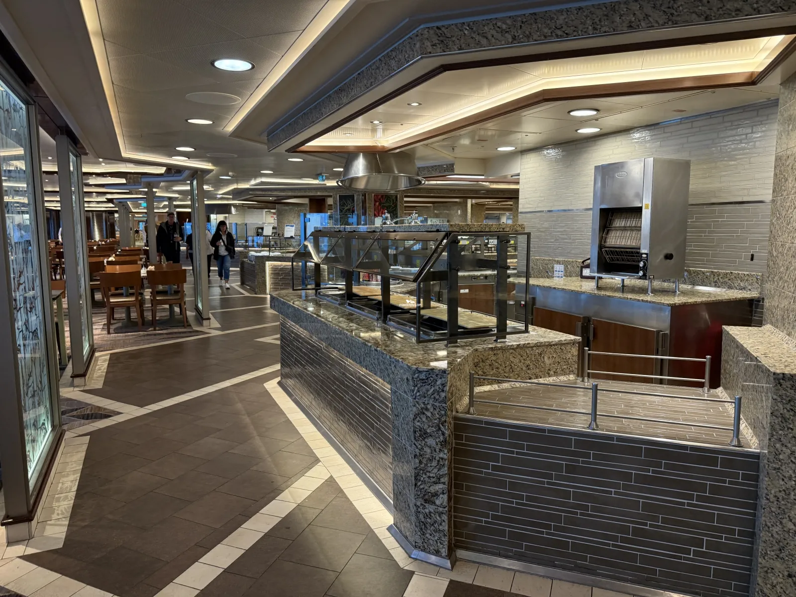 The ship's buffet style dining area with 900 seats. Serves cuisines from around the world including Mediterranean dishes, an Italian pasta speciality counter and a new 'east-meets-west' street food speciality counter.The Bakery inside the World Fresh Marketplace will serve Western, European and Asian pastries.