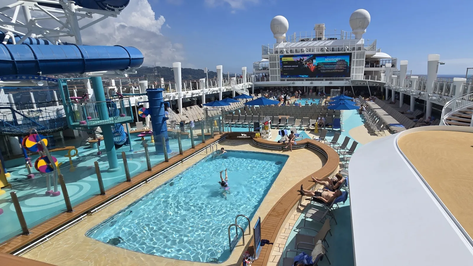 This tool will help you see what is on the deck above and the deck below your stateroom. Don't be surprised by loud chair scraping noise above you.
