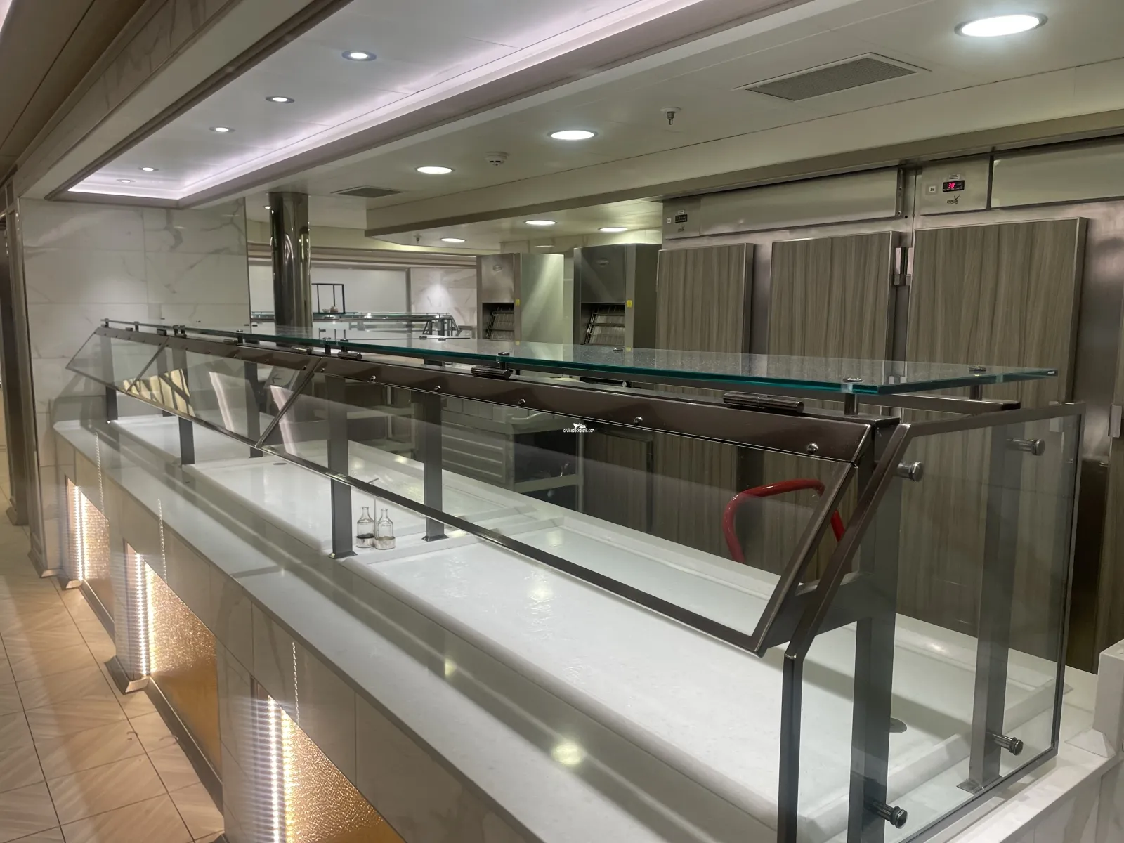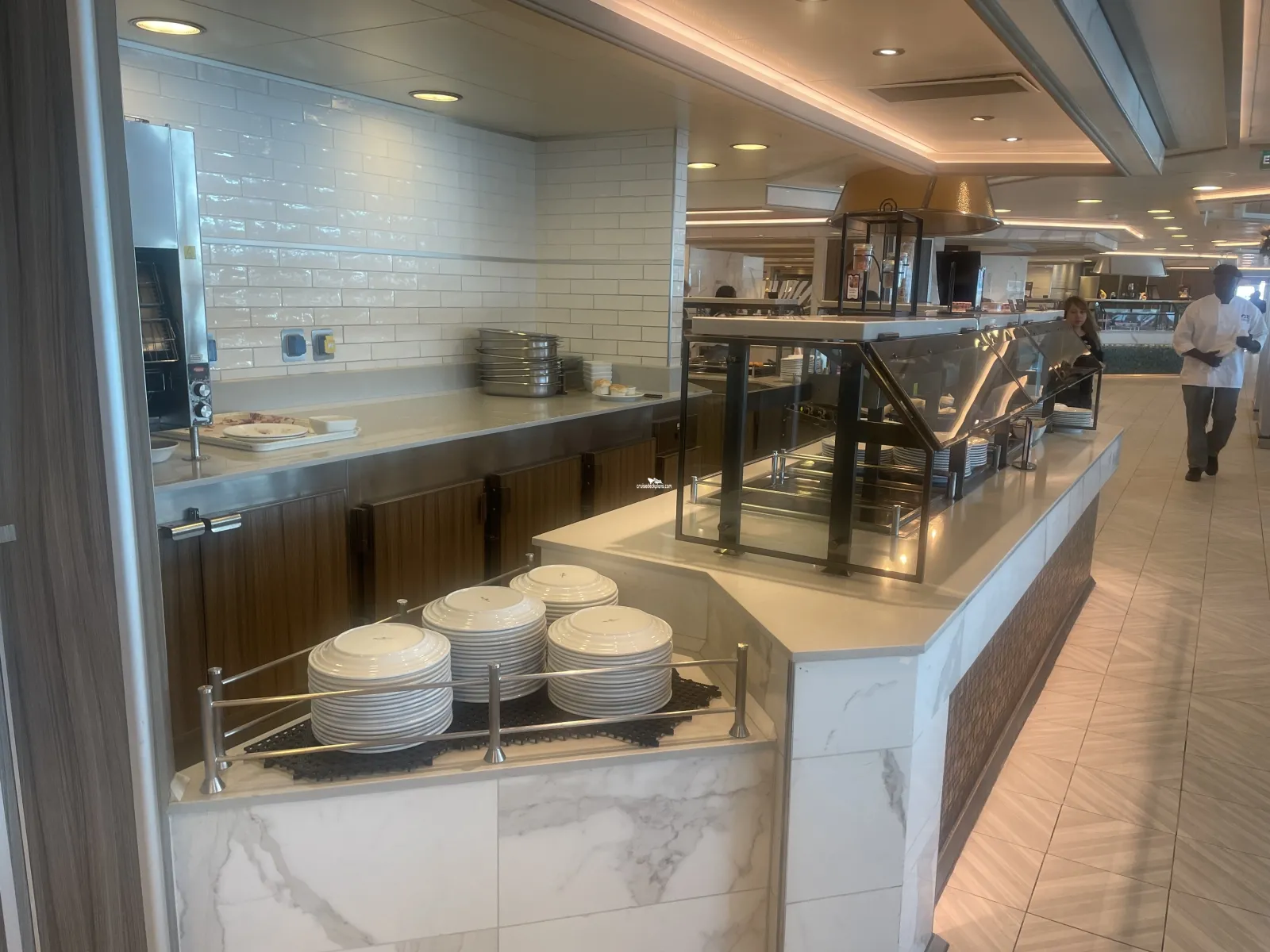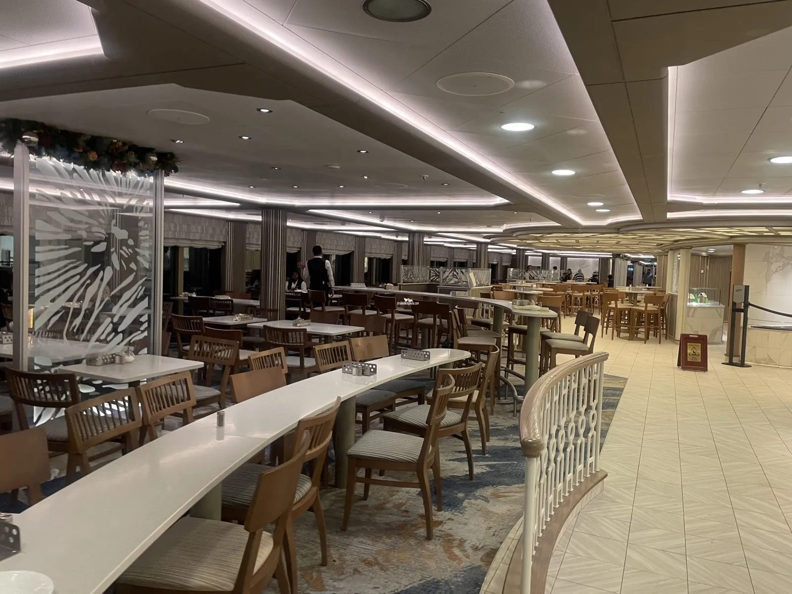 The ship's buffet style dining area with 900 seats. Serves cuisines from around the world including Mediterranean dishes, an Italian pasta speciality counter and a new 'east-meets-west' street food speciality counter.The Bakery inside the World Fresh Marketplace will serve Western, European and Asian pastries.