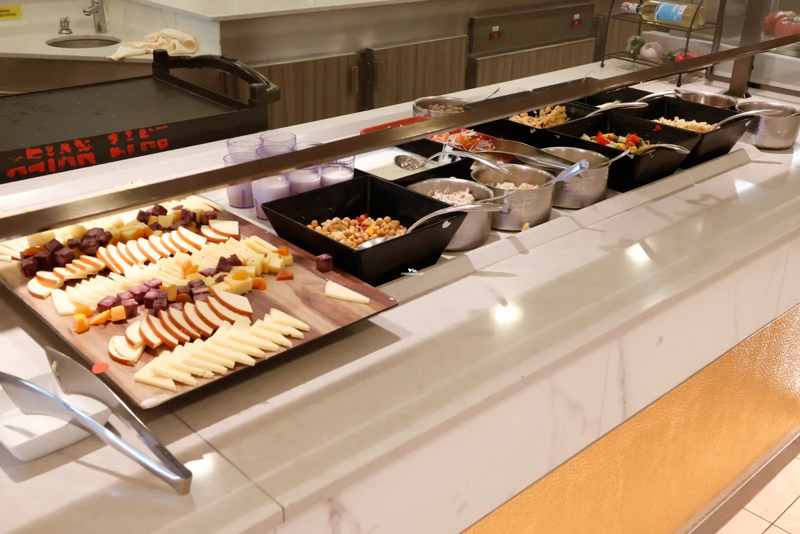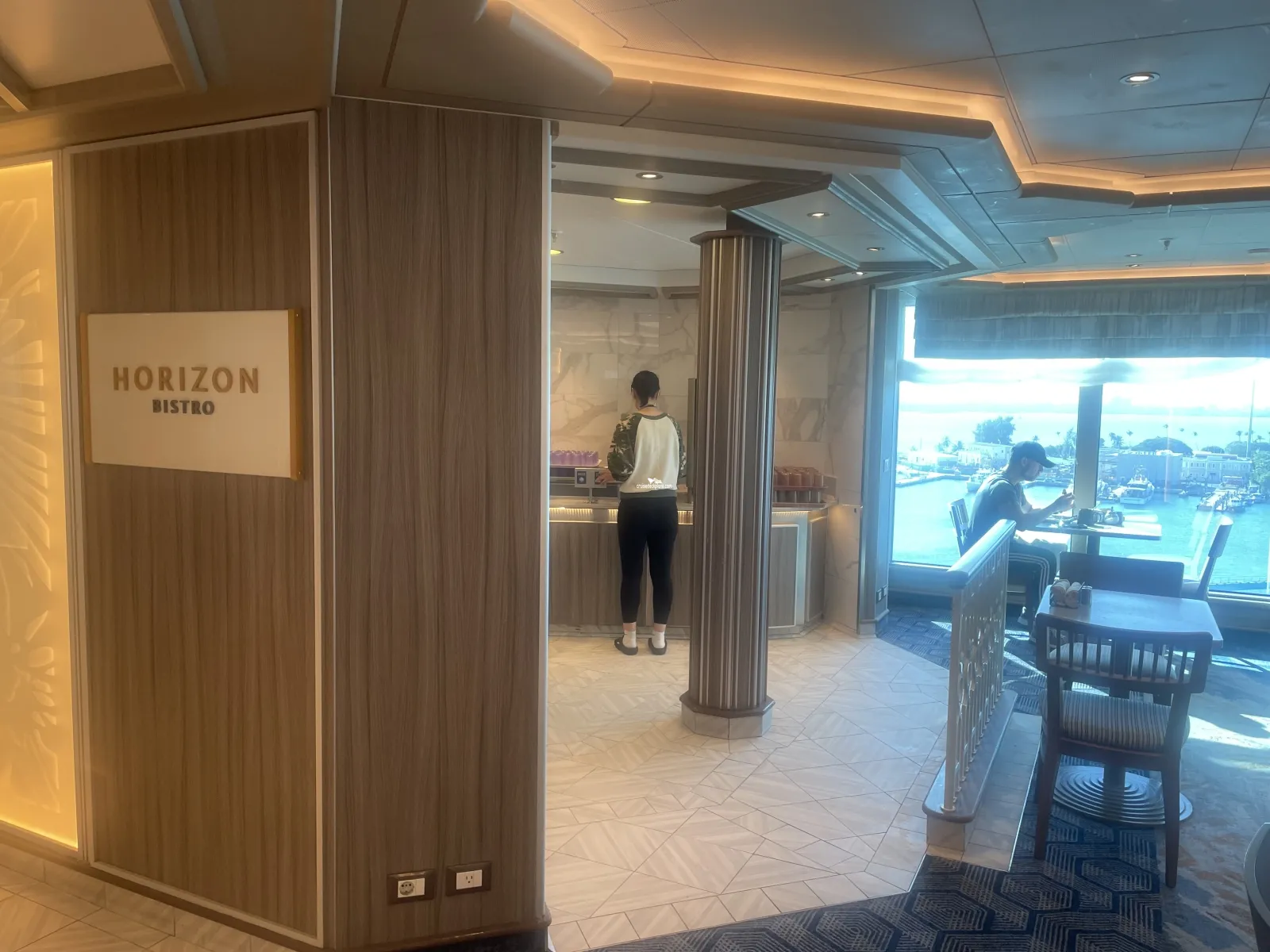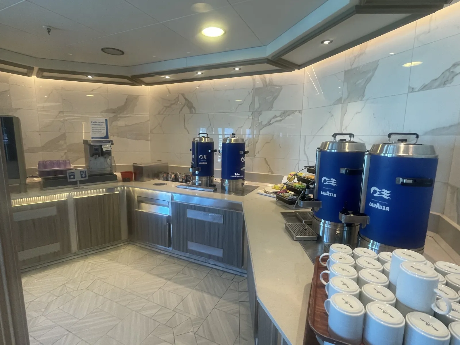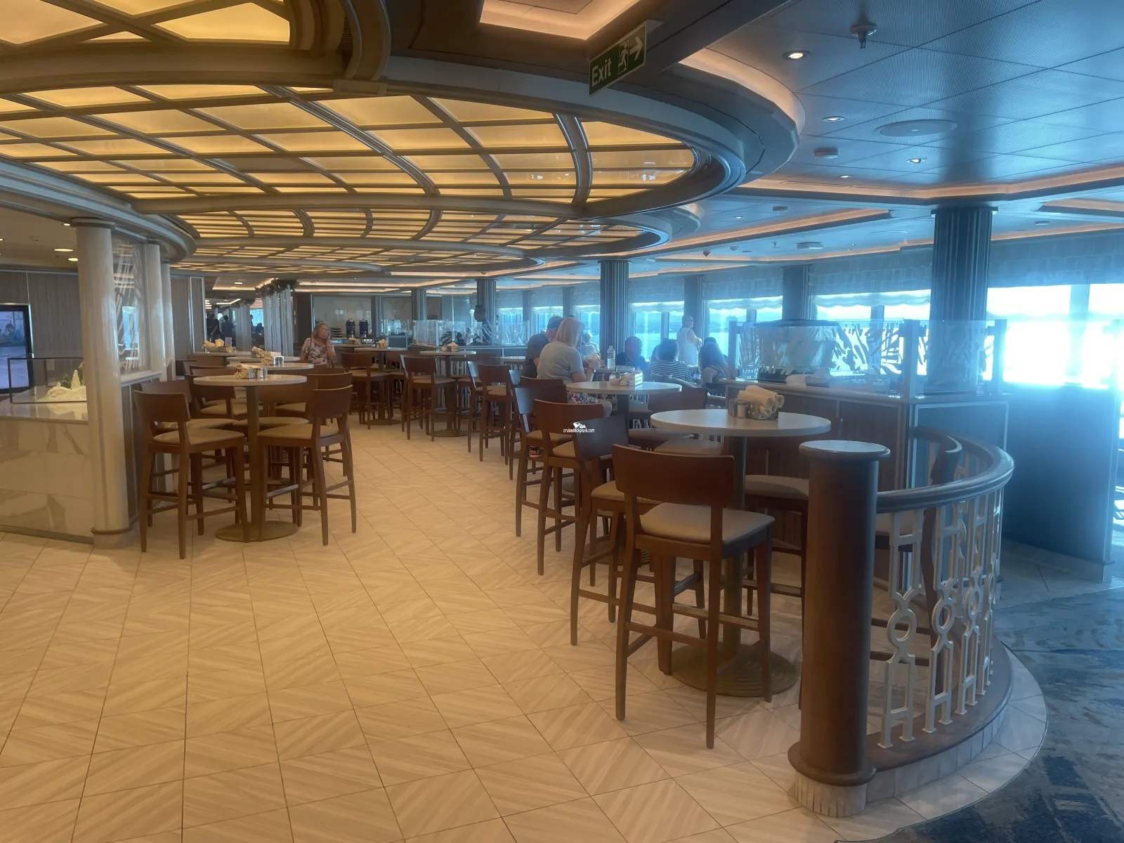 The ship's buffet style dining area with 900 seats. Serves cuisines from around the world including Mediterranean dishes, an Italian pasta speciality counter and a new 'east-meets-west' street food speciality counter.The Bakery inside the World Fresh Marketplace will serve Western, European and Asian pastries.