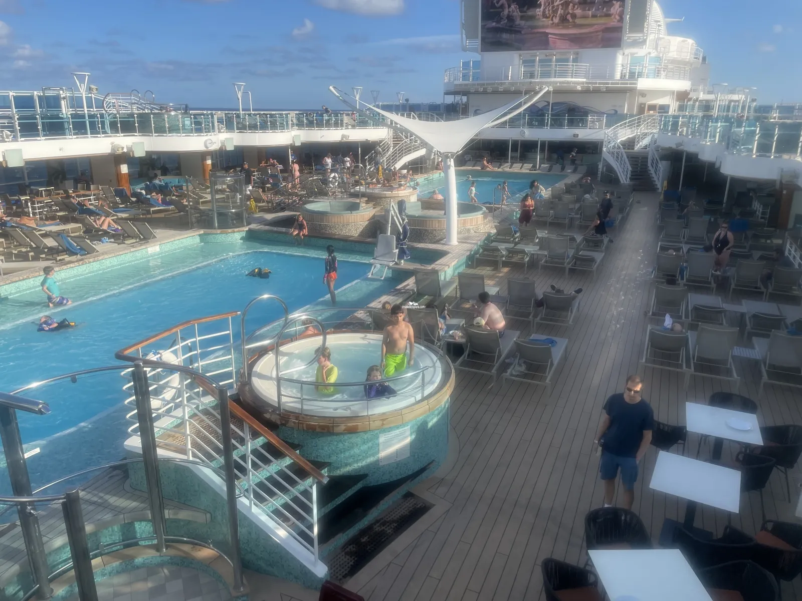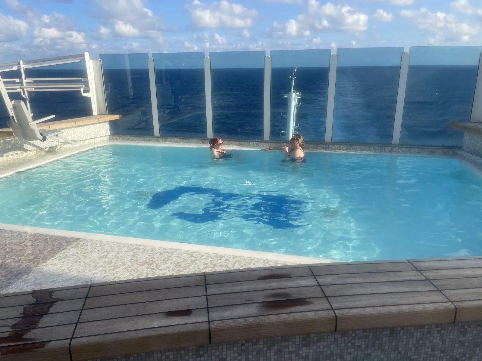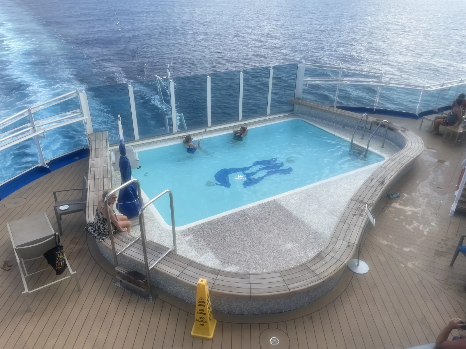 Port side and starboard side glass floor that allows you to view all the way down to the ocean.Wake View Bar and Pool