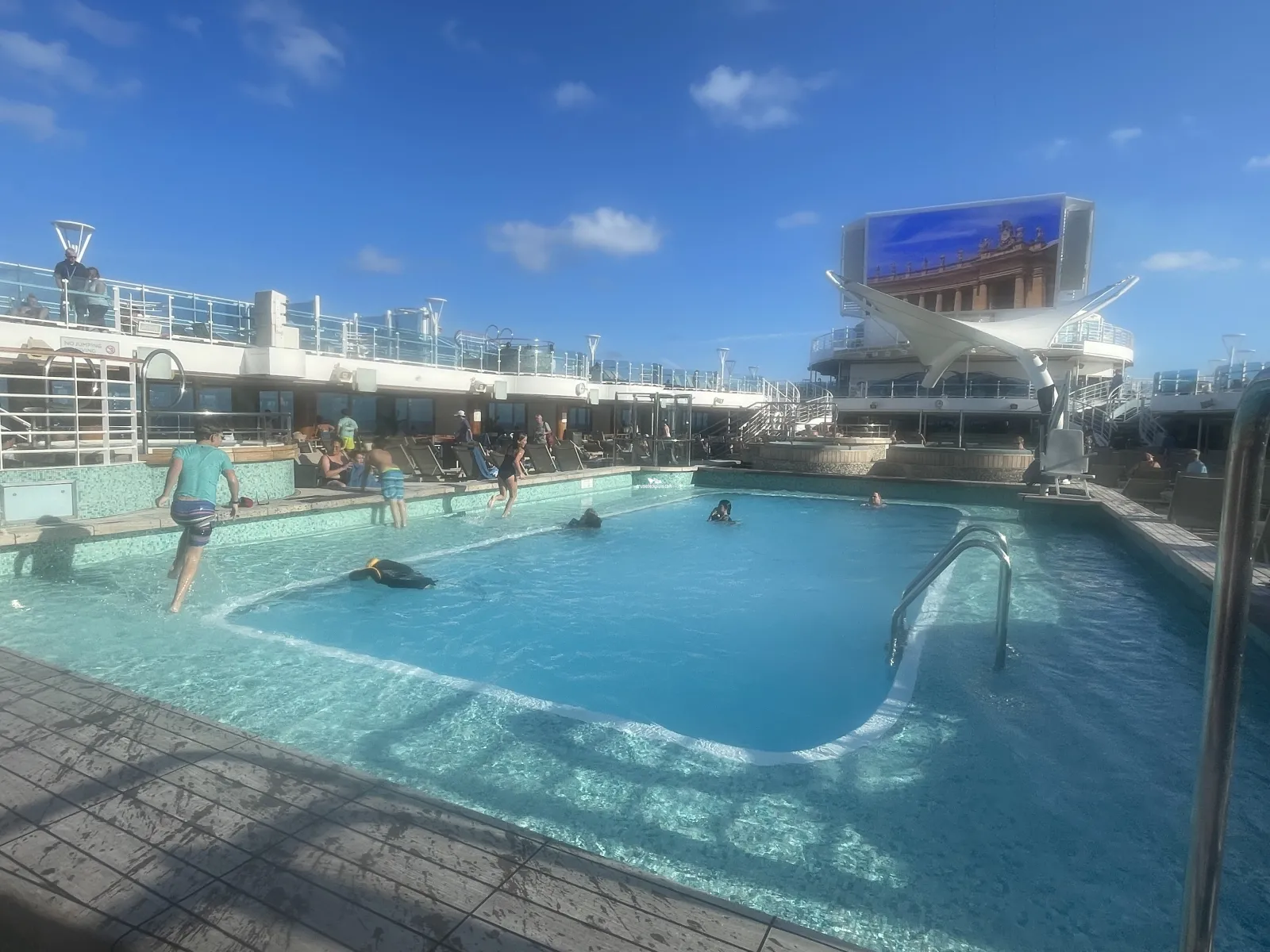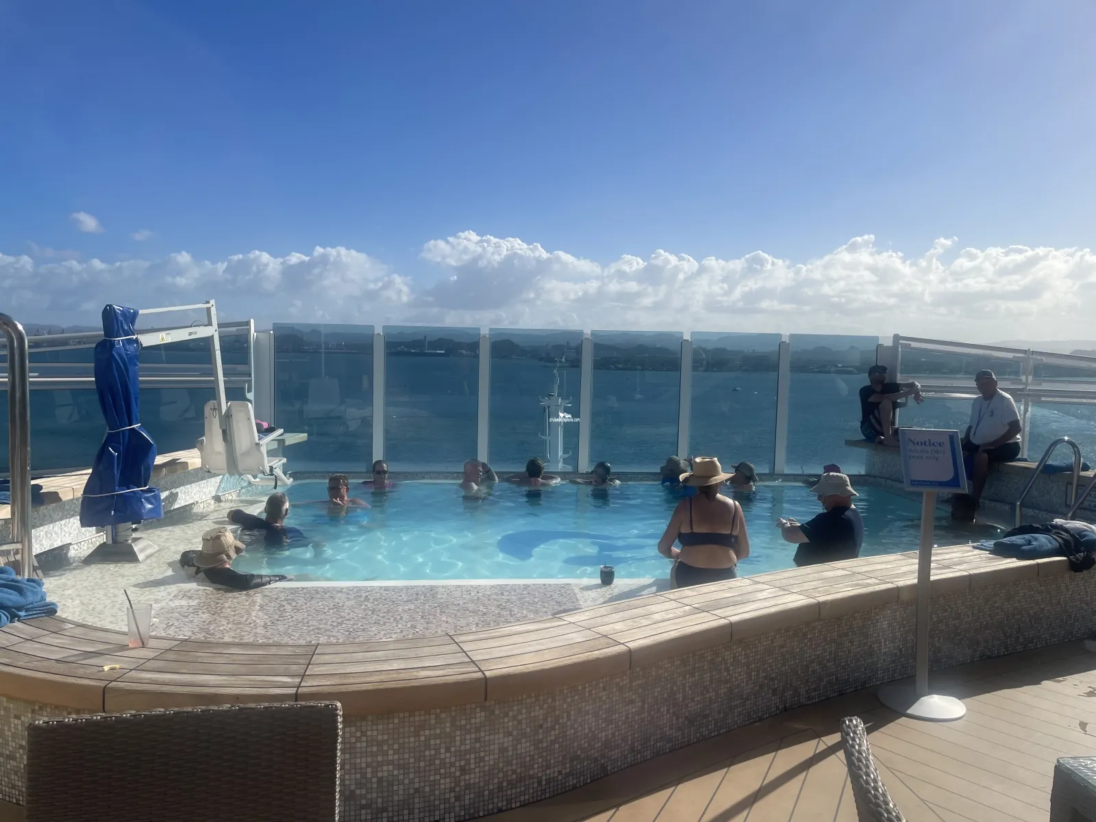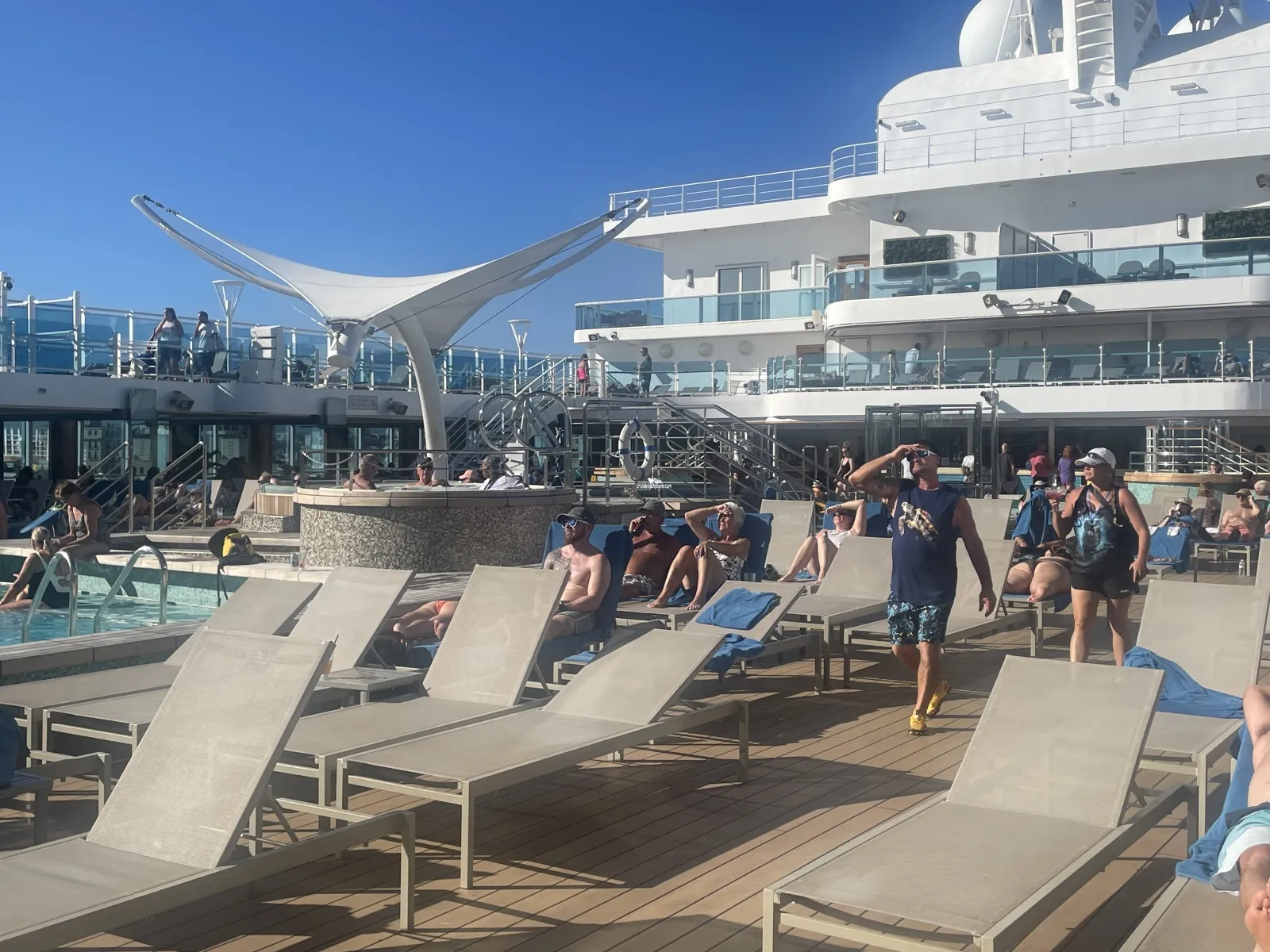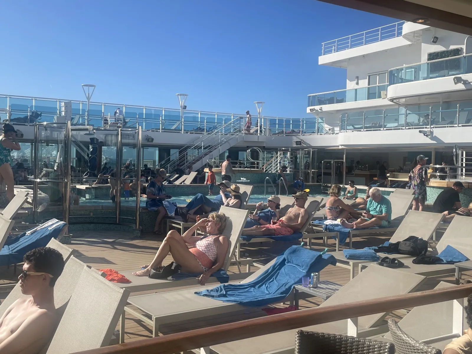 Port side and starboard side glass floor that allows you to view all the way down to the ocean.Wake View Bar and Pool