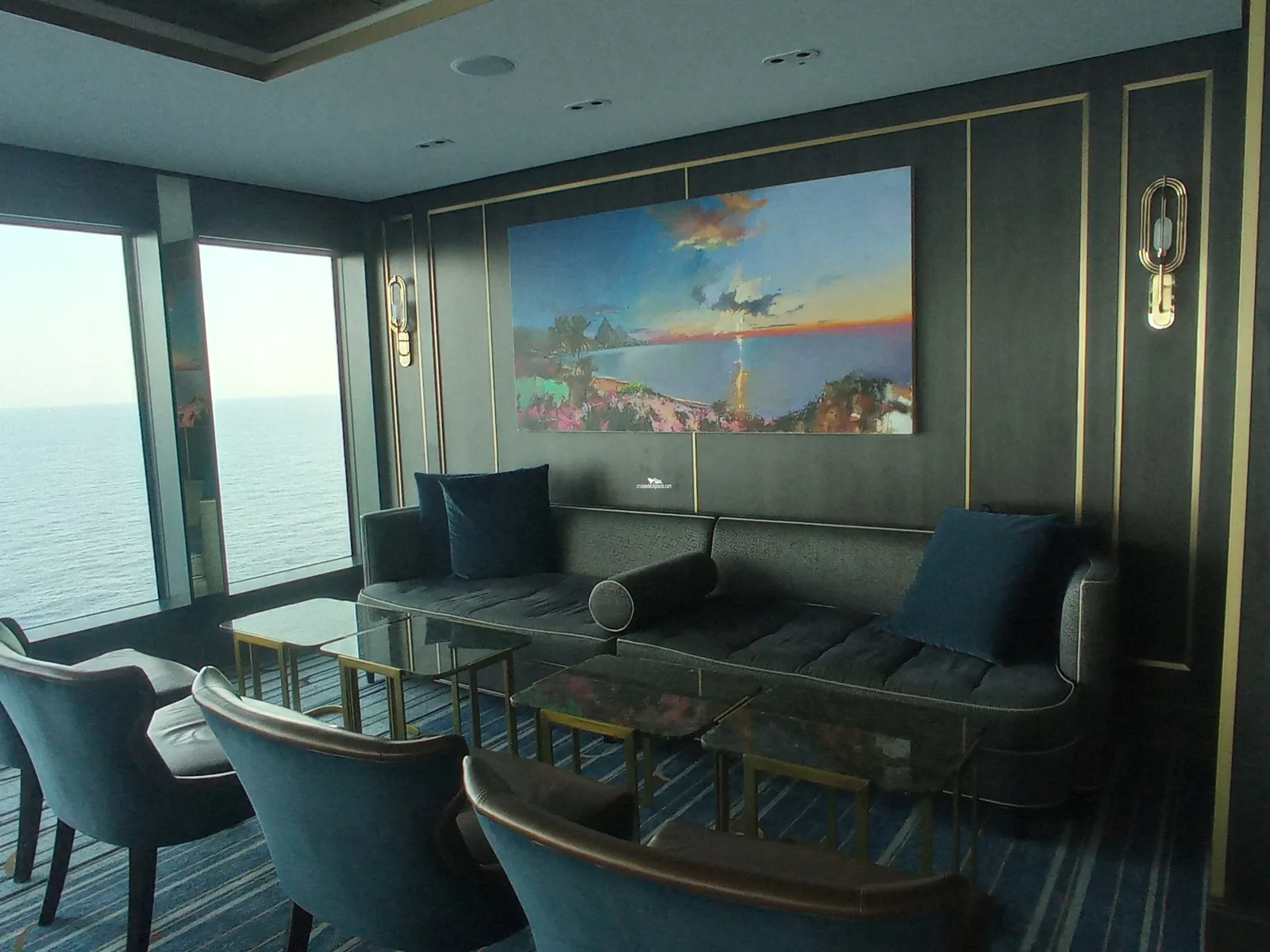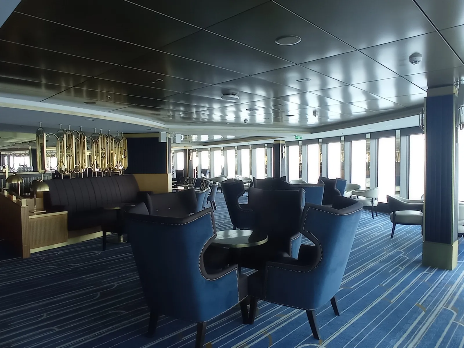 Observation lounge that offers panoramic sea views. Enjoy reading and relaxing during the day. In the evening becomes a cocktail lounge with live pianist.Epicurean
