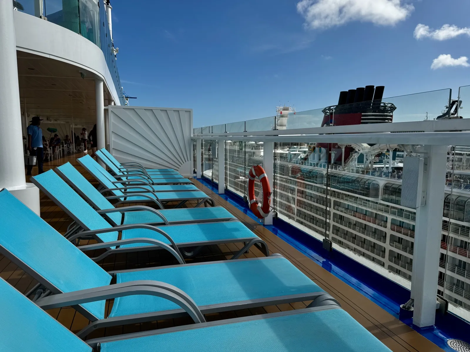 This tool will help you see what is on the deck above and the deck below your stateroom. Don't be surprised by loud chair scraping noise above you.