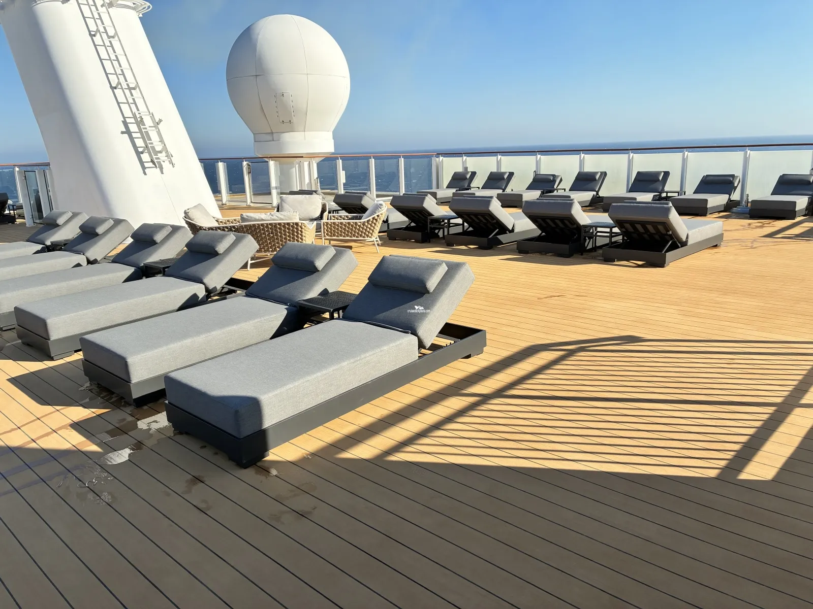 Portside of Sun Deck is open to all guests for lounging. The public area was greatly reduced to make more Vibe space in March of 2025.Haven Sun Deck