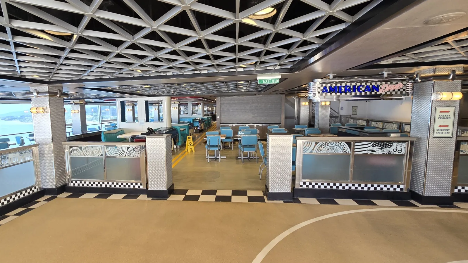Guests of The Haven can recline and unwind in the exclusive, plush Horizon Lounge located on Decks 17 and 18. The two-story, forward facing lounge offers The Haven guests breathtaking panoramic views.Galaxy Pavilion