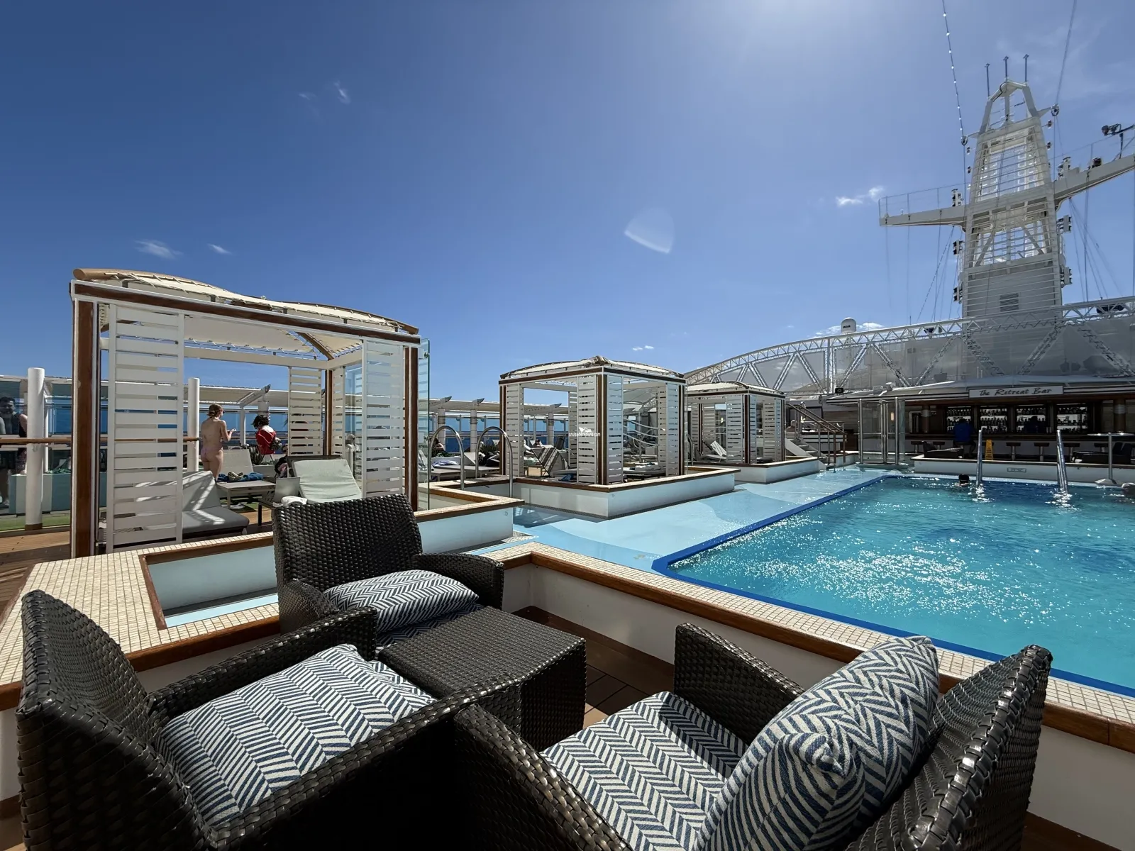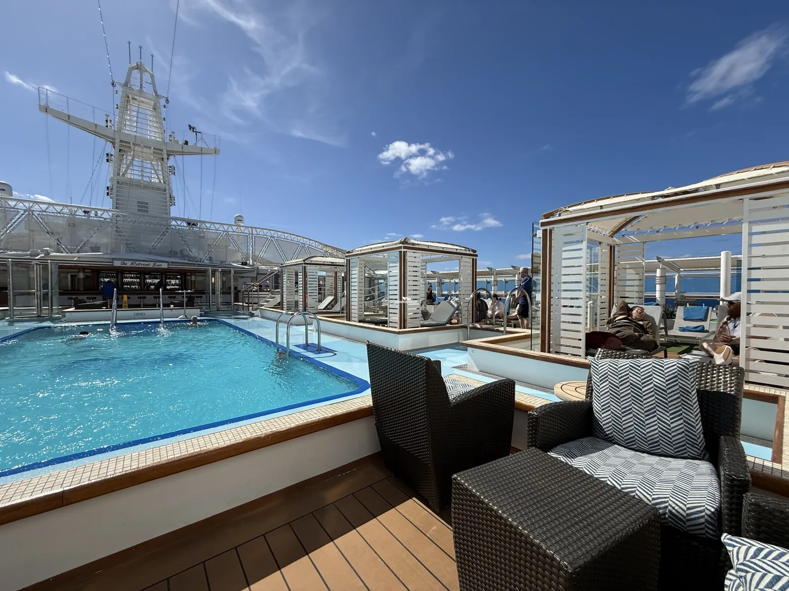 Provides an oasis of tranquility for guests with private cabanas with their own refrigerators and flat screen TV's. Leading off the sanctuary is the ship's adult only retreat pool with four private cabanas at the edge of the pool and two hot tubs.SeaWalk