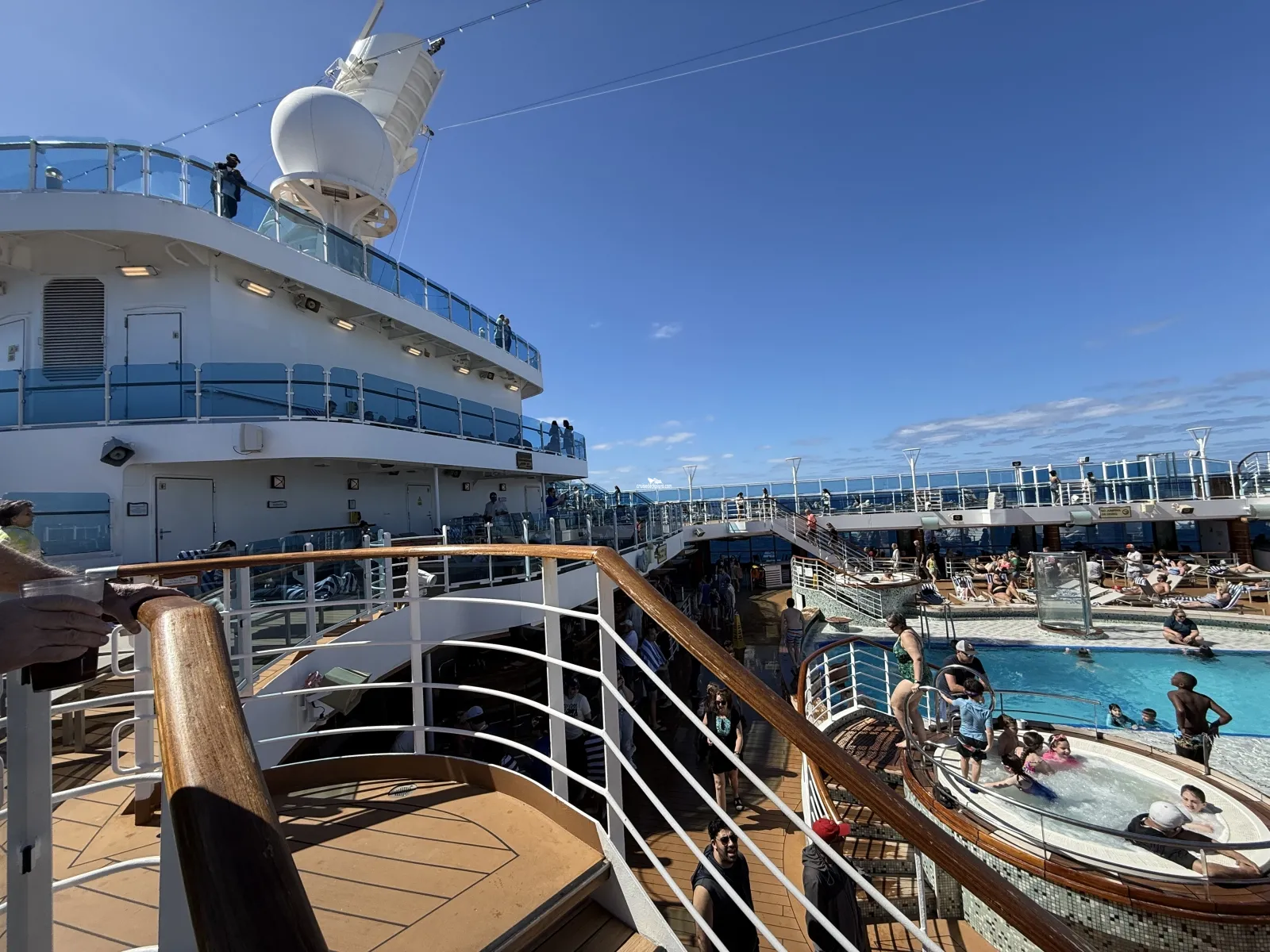Two level high sea walk that extends out over side of the ship. The first level has a glass floor that allows you to view all the way down to the ocean.Sun Deck