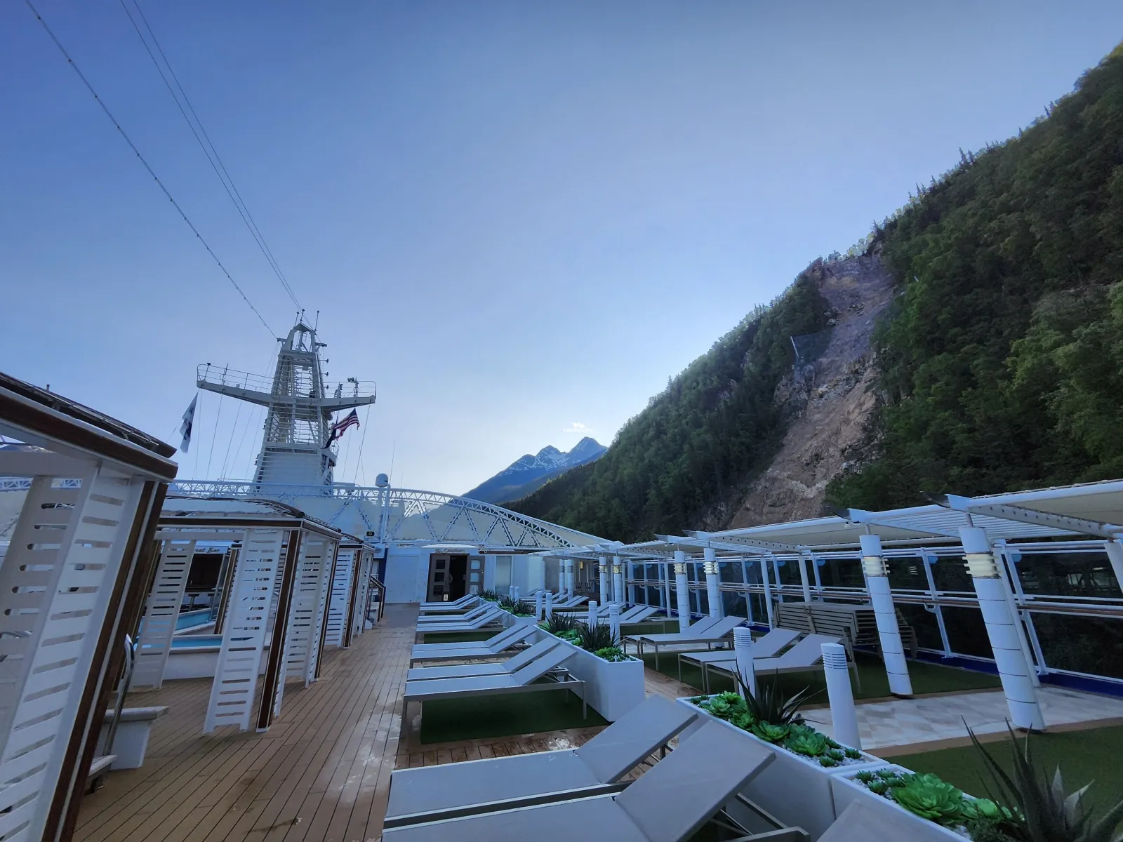 The centre features a full range of equipment from treadmills, recumbent bicycles and ellipticals to free weights and strength equipmment. In addition to the stunning ocean views, the majority of the equipment also feature personal tv screens whilst some also have interactive virtual experience screens such as the bikes so guests feel as though they are actually on the open road with other cyclists.Sun deck Aft