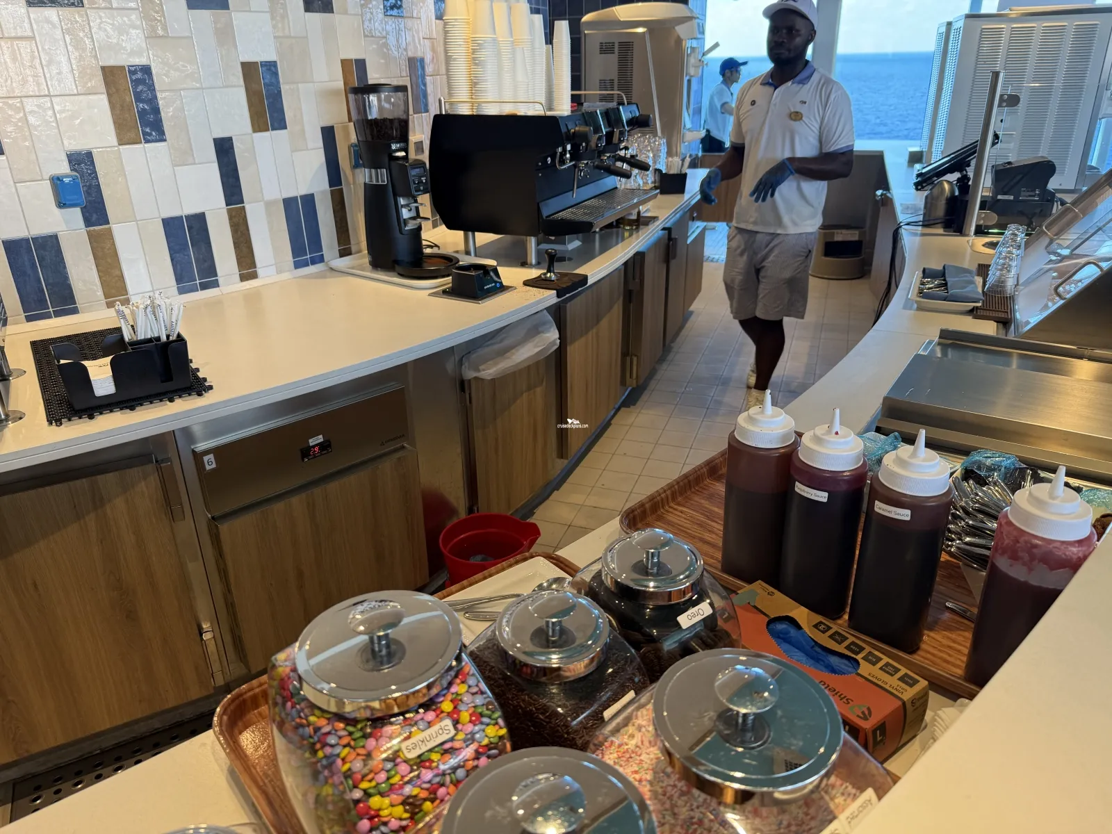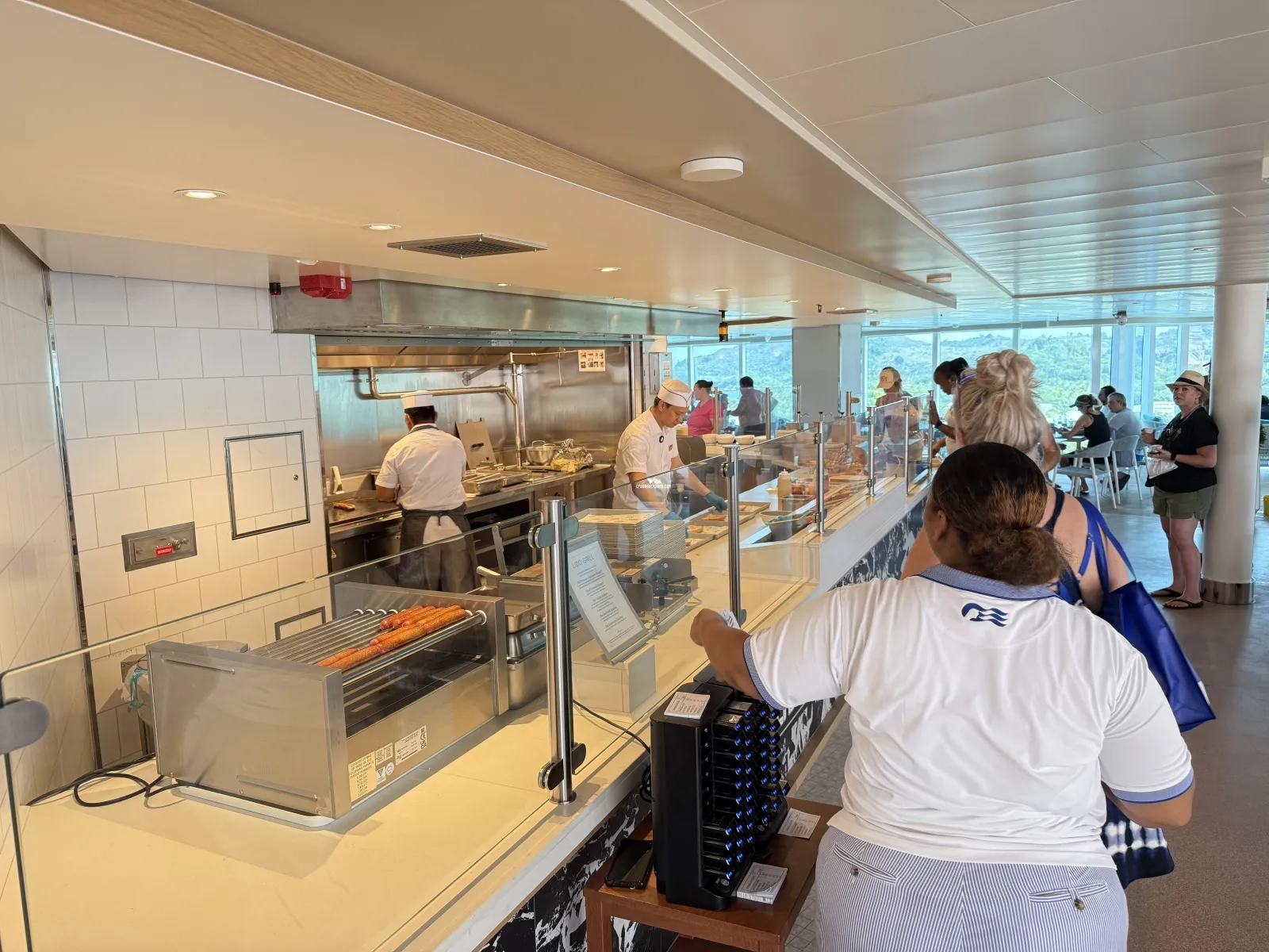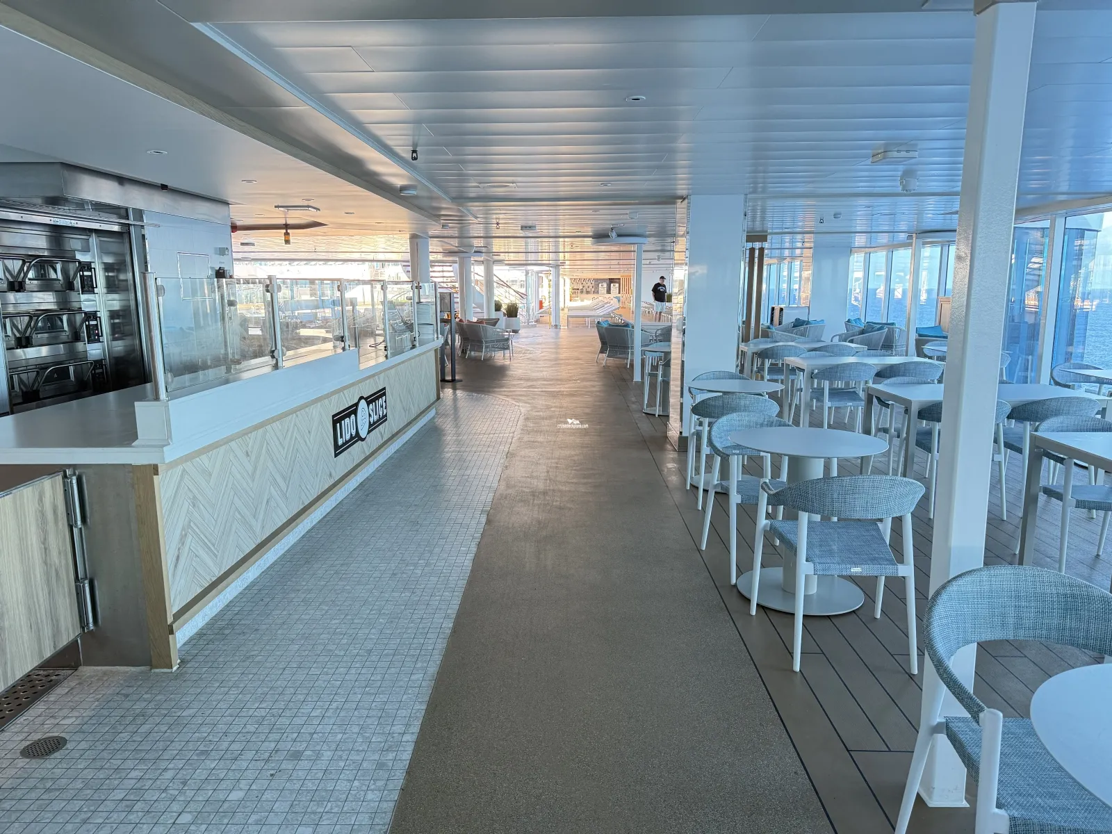 Taco & Shawarma bar serving seafood or chicken tacos, bean vegetarian or pulled pork burritos, and Cheese or California nachos. Also available is lamb & turkey shawarma.Sea View Terrace