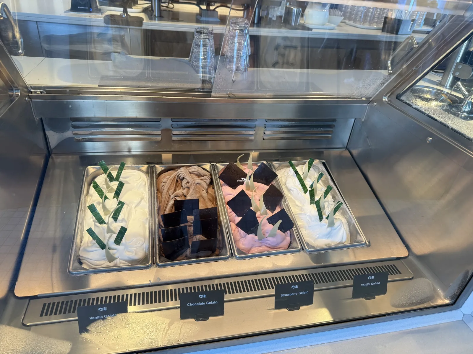 Curated menu by Master Chef Rudi Sodamin. Transcending into a multisensory exploration and offering dishes embodying the artists passion, the unique experience features a seven-course, prix fixe menu, costing $79 per person. For main courses, diners can find fish selections such as Lobster Thermidor with Clams and Wild Rice and Honey-Basted Wild Salmon, with meat selections extending to Wagyu Chateaubriand Rossini and Roast Quail Farci with Truffles.Coffee & Cones