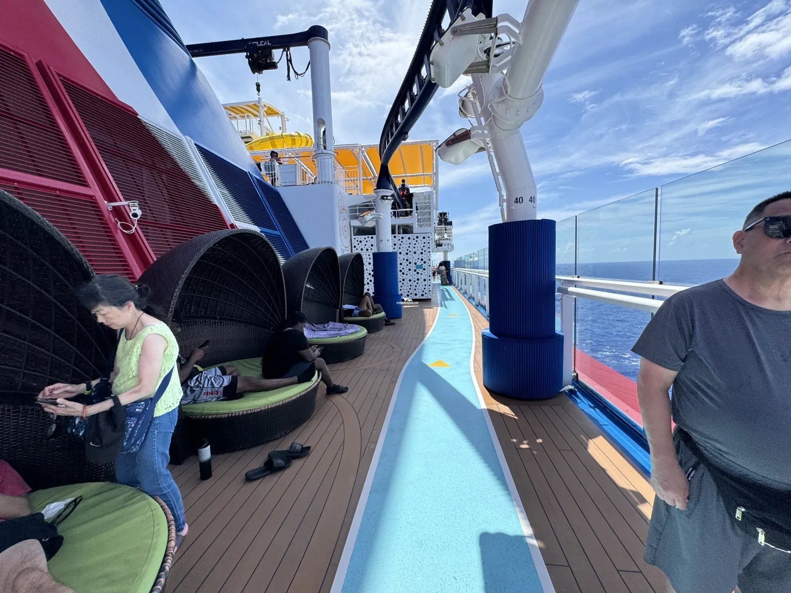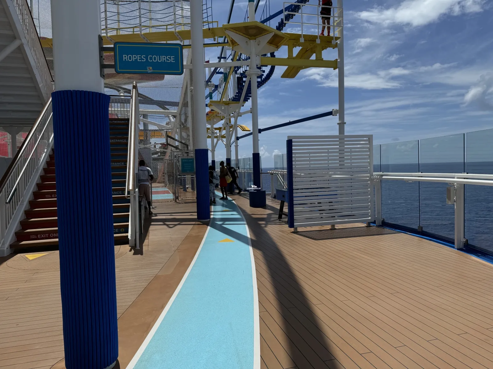 Called SkyTrack. Padded Jogging Track that circles the aft of deck 18.Mini Golf