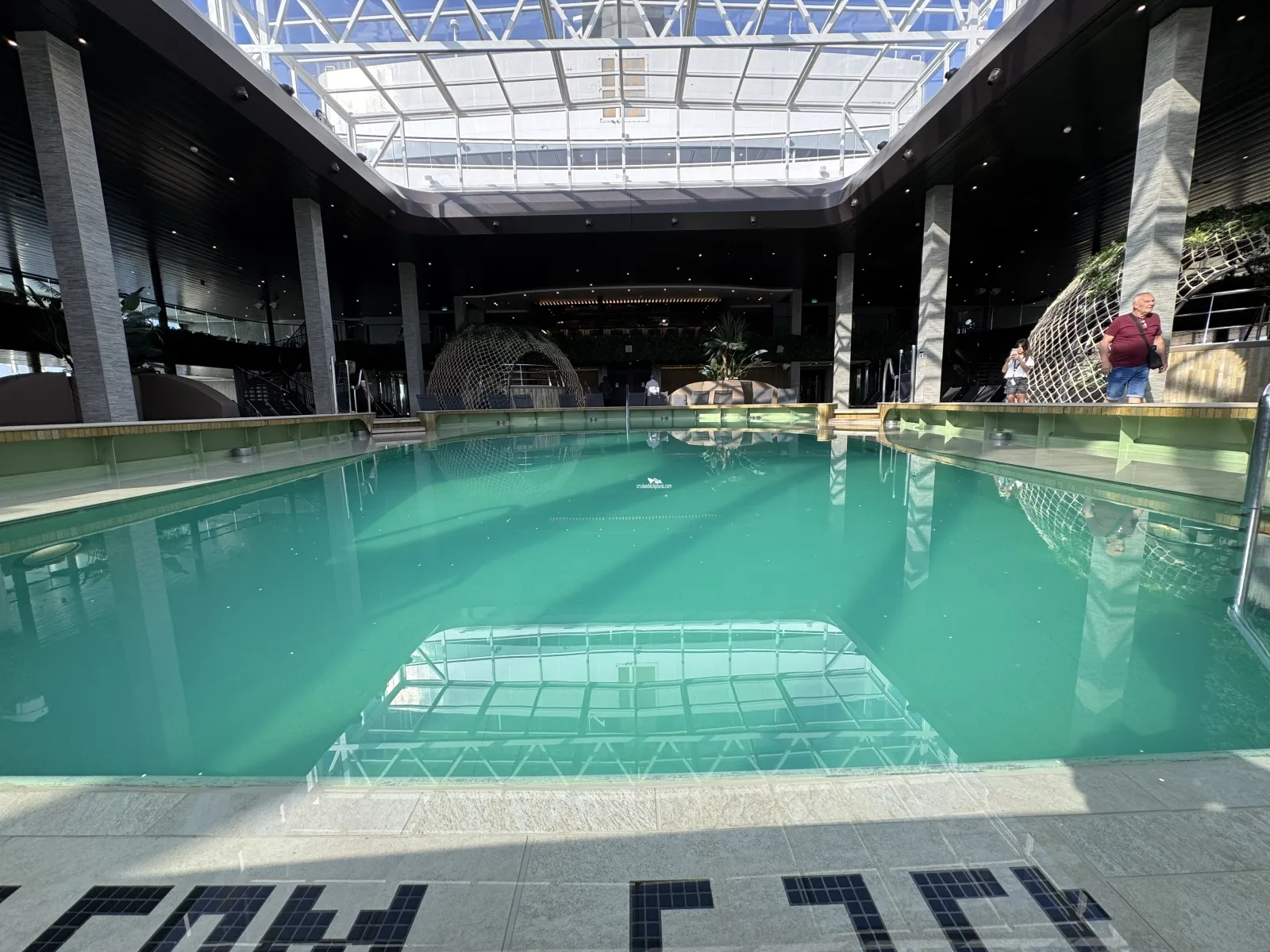 Main pool area with vast sundeck and amphitheatre.Botanic Garden Pool