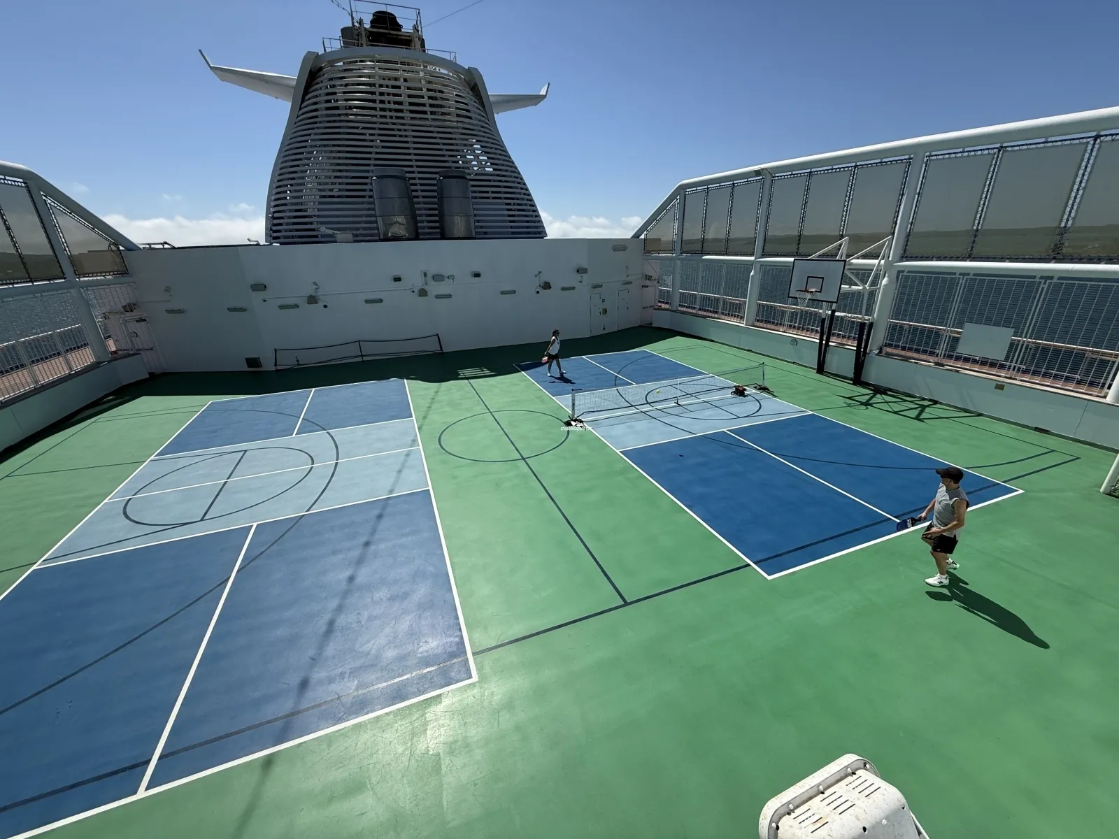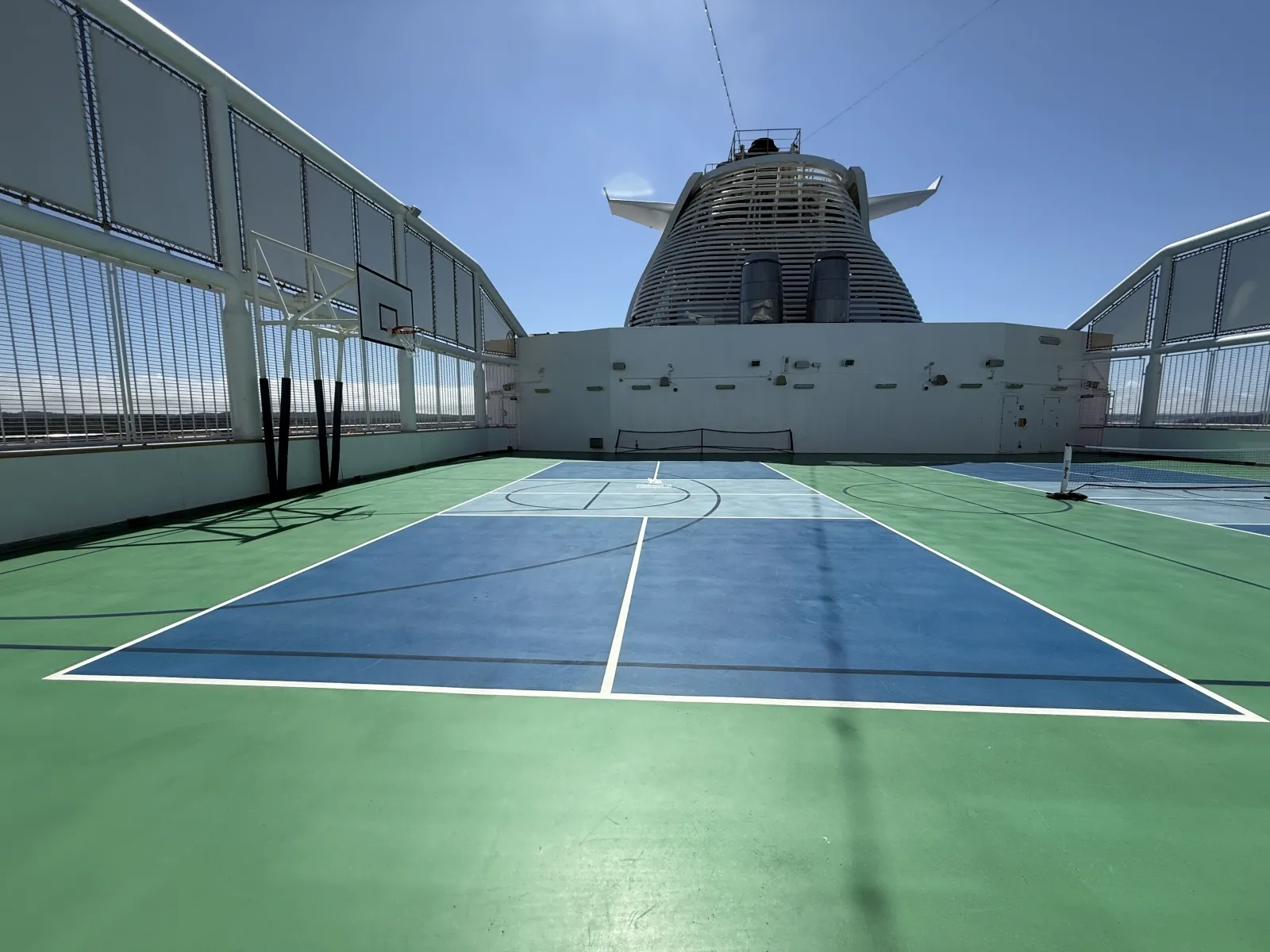 Basketball court, golf driving net, table tennis and game lounge located aft on Sports deck.Jogging Track