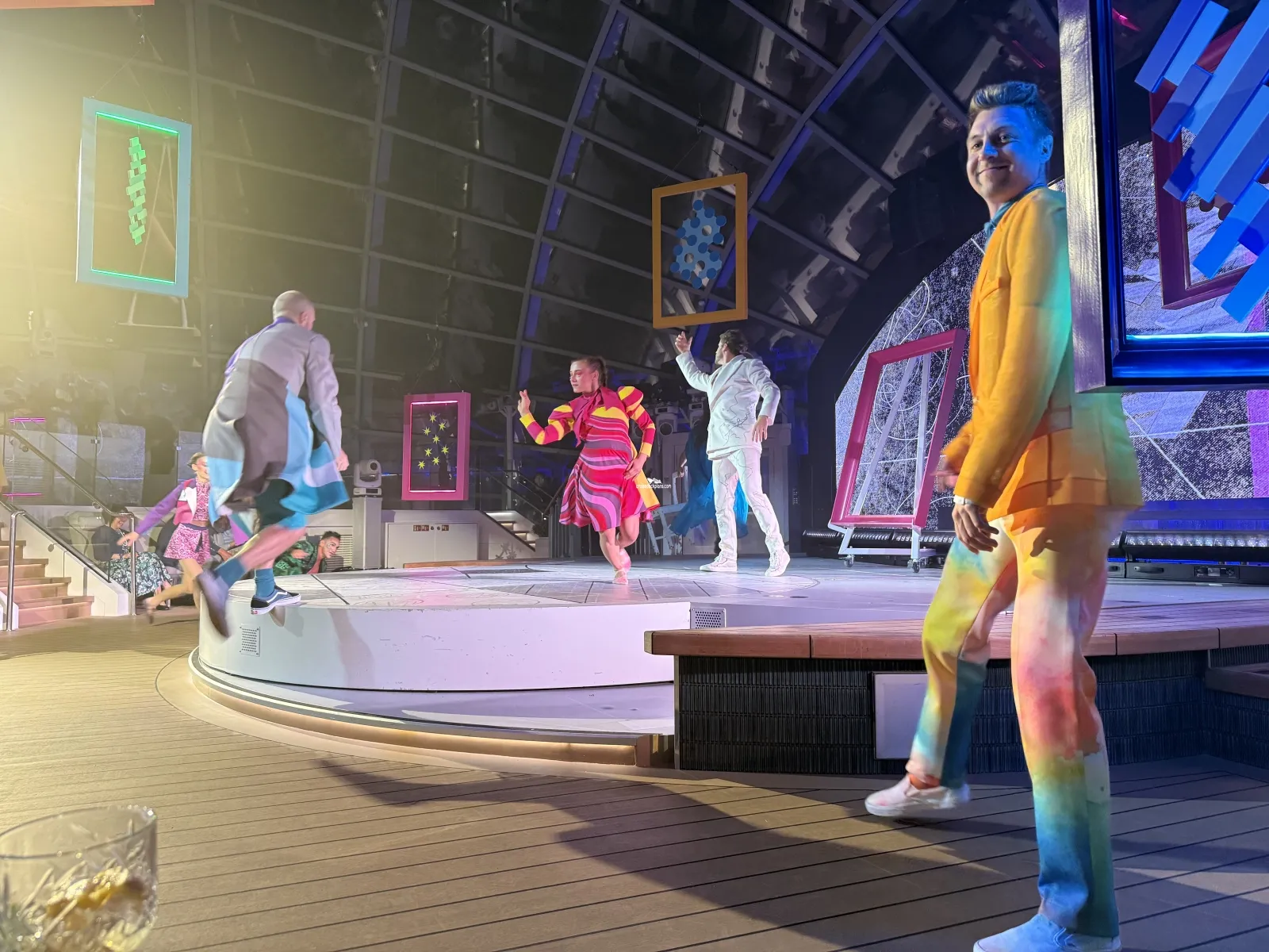 Area located on front of the ship serving as a pool lounge area during the day and entertainment center at night. This venue is often closed for special events and entertainment rehersals. Shows here will be popular with seating for only 250 passengers.Sun Deck
