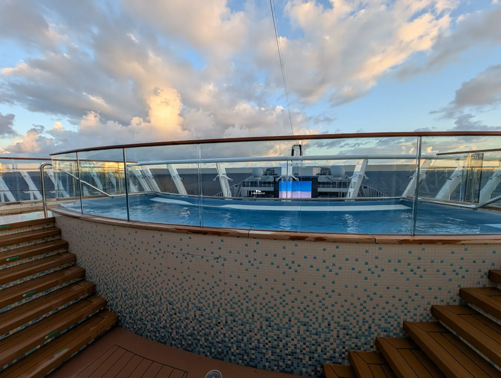 Private solarium and pool area for passengers staying in Aurua class cabins.Cabin Check Tool