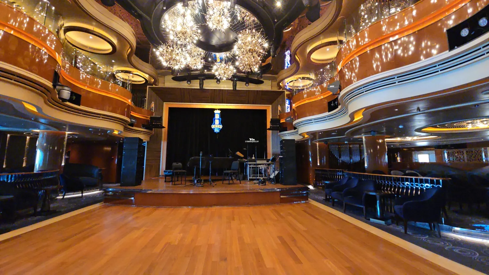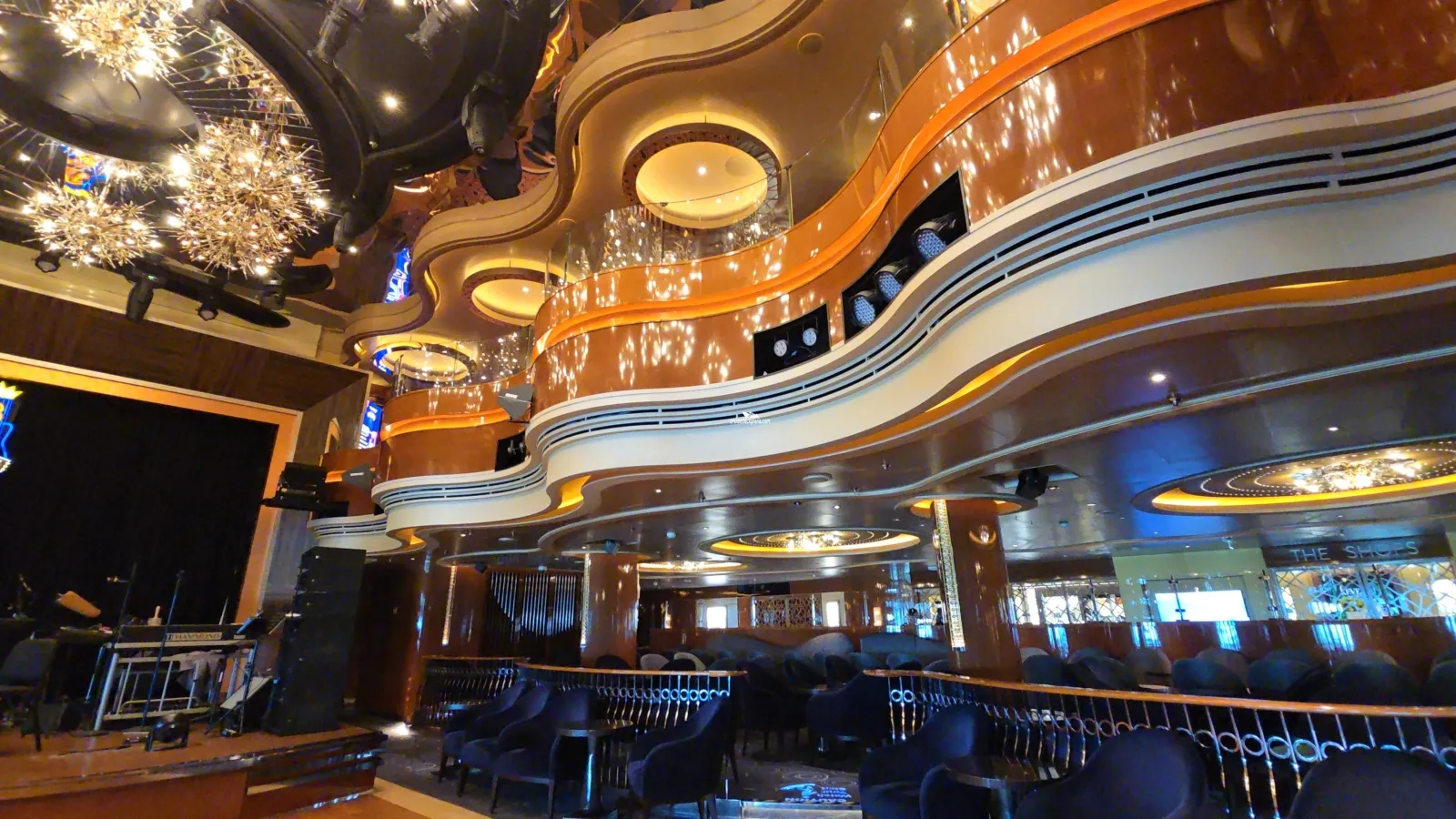 Main theater and show lounge for musical and dance production shows as well as concerts, comedians and other performers. Seats 667 and has 270-degree video screen.Ocean Bar
