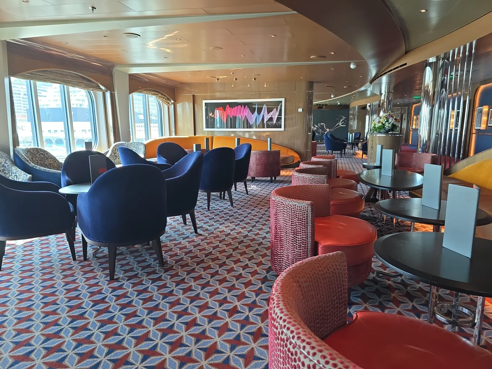 Three deck high, open floor design with area for live music and entertainment. The Art Gallery is now located in the Atrium on deck 1.Club Orange