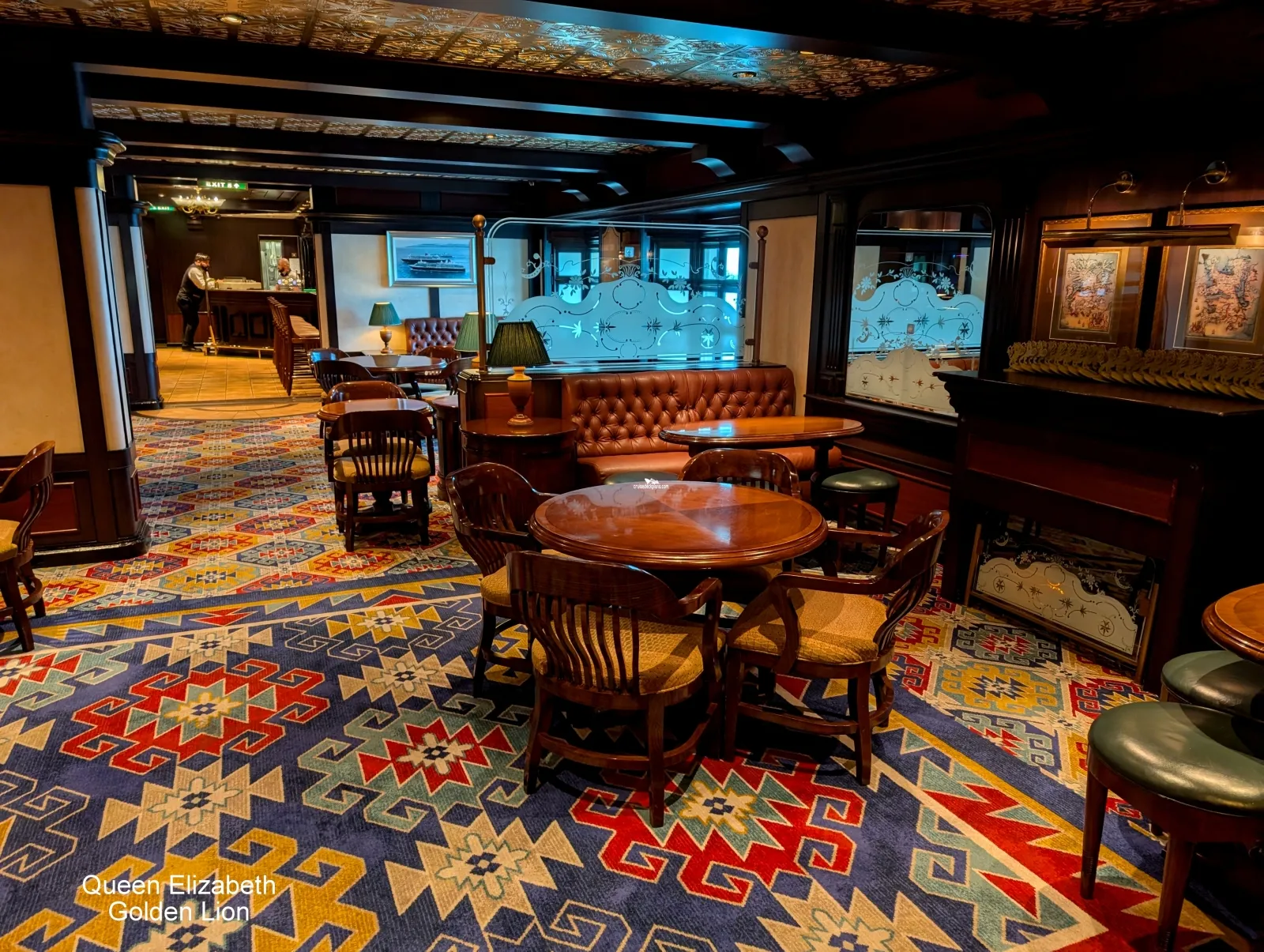 Two level. The elegant tradition of Afternoon Tea is a Cunard signature not to be missed. White-gloved waiters serve delightful cucumber sandwiches, fresh scones and tea accompanied by the sounds of the orchestra in the magnificent Queens Room ballroom. By night the Queens Room becomes the setting for elegant gala balls with live music and gentlemen hosts.The Golden Lion