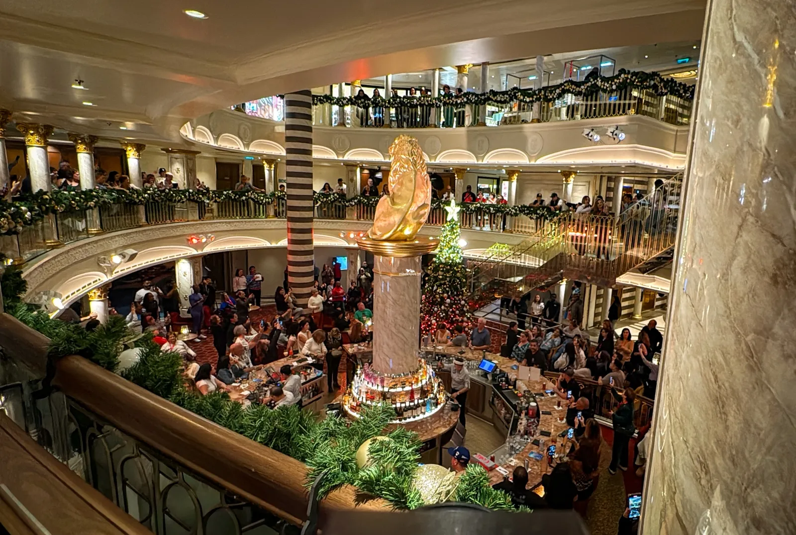 Grand Central Atrium with its own bar on Deck 3. Spans decks 3, 4, and 5. This is the main entrance of the ship with its own seating and dance floor. Features live music during day and night.Medici Restaurant