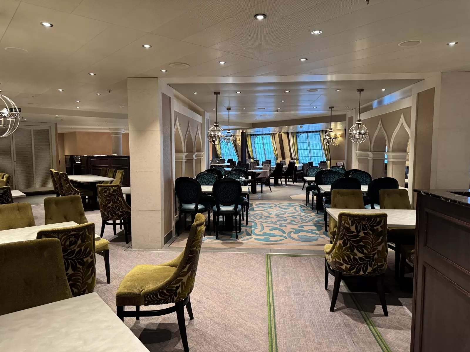 Located Aft Deck 3 and Deck 4. Sit-down wait staff service. Sea Days: open seating brunch: 8:30am-12:00pm (Deck 3 and 4). Port Days: open seating breakfast: 7:30am-9:30am; hours may vary due to port arrival (Deck 3). Sea Days: Tea Time: 3:00pm-4:00pm (Deck 4). Open for dinner - Your Time open seating: 5:45pm-9:30pm (Deck 3 and 4)Cabin Check Tool
