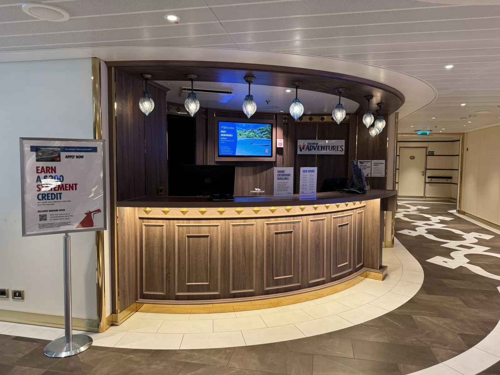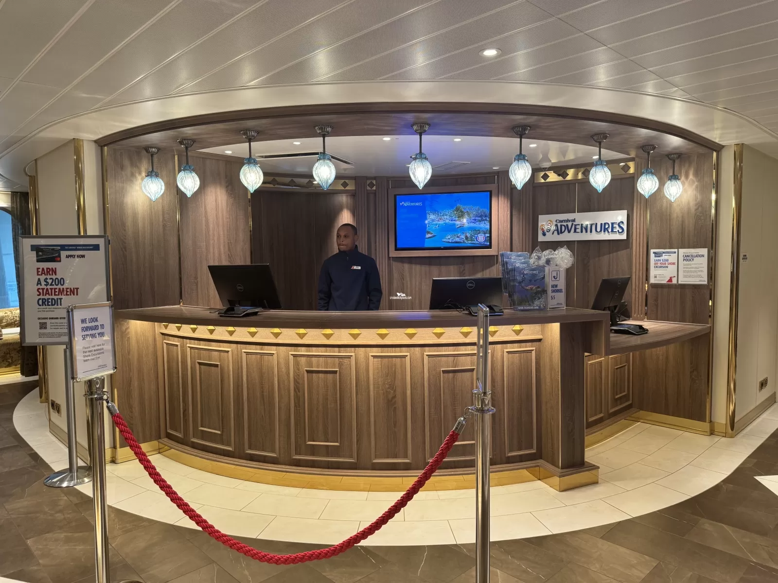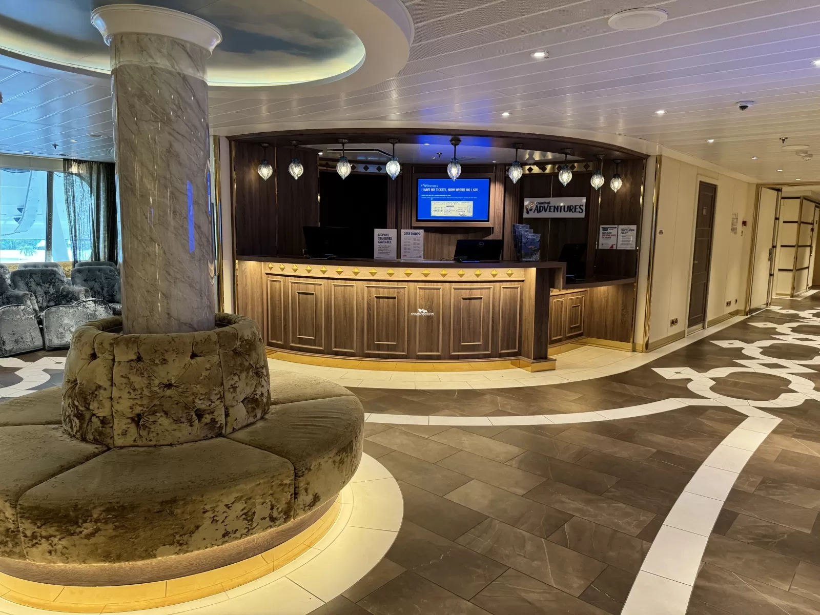 Ship sponsored shore excursion desk. Provide information and purchase of shore excursions and golf excursionsGuest Services