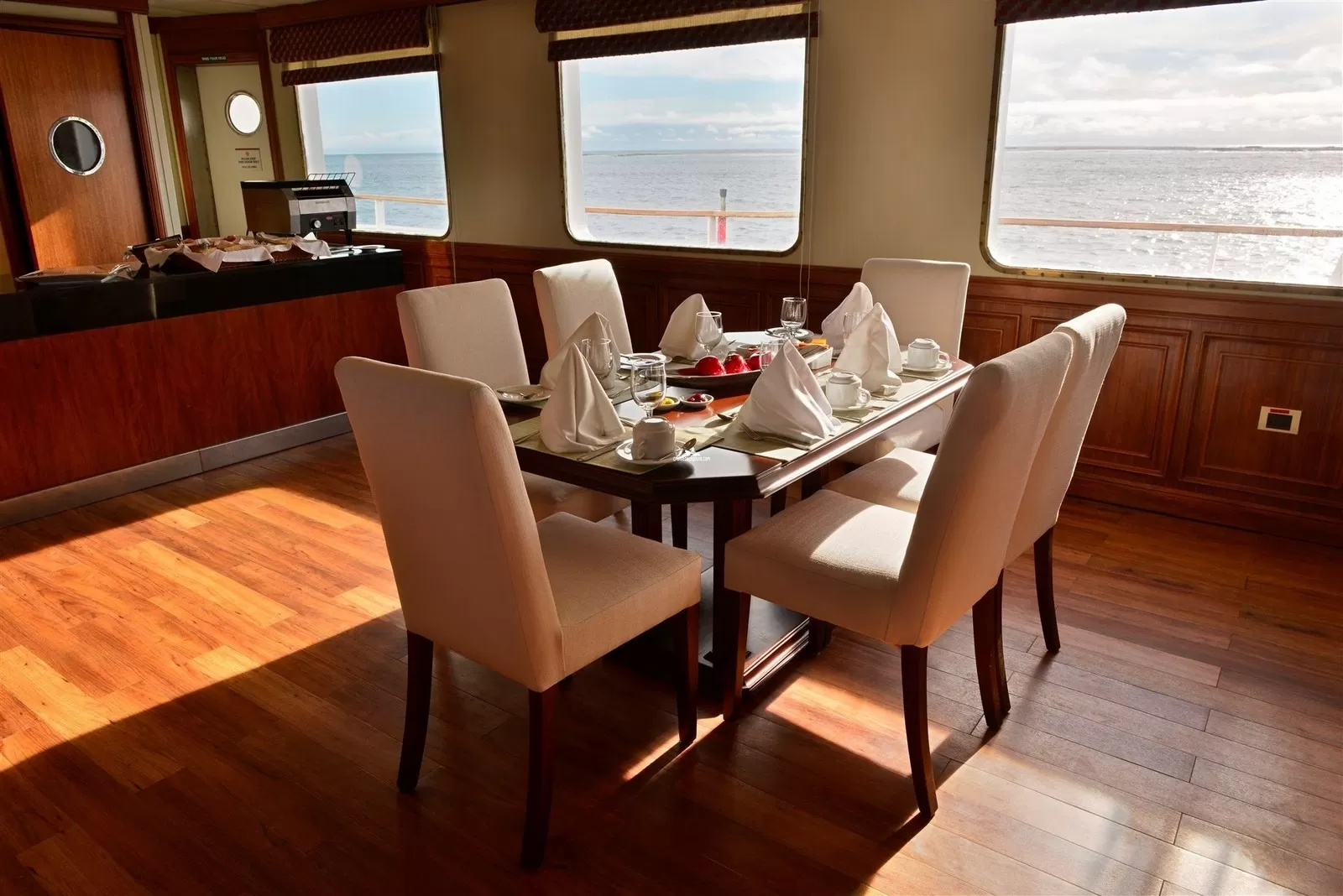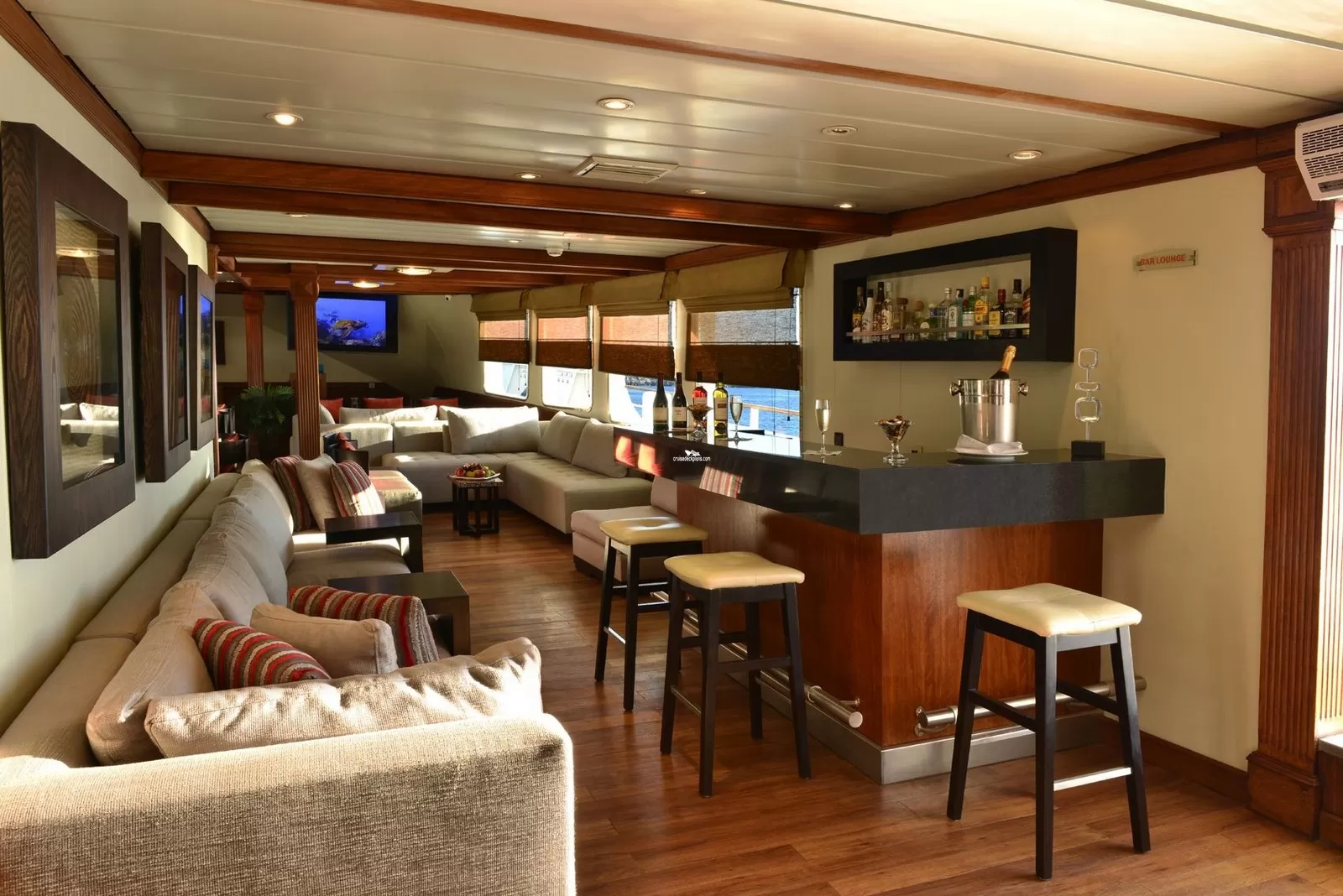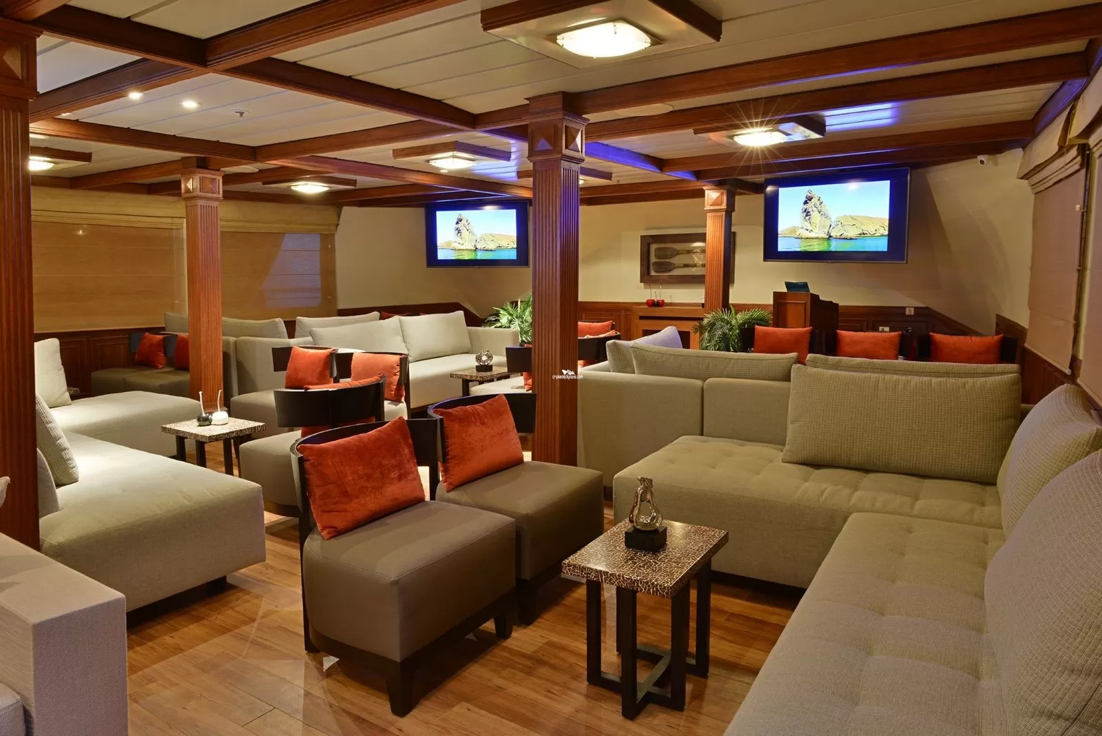 The main lounge provides a relaxed atmosphere for socializing, watching documentaries or sipping a cocktail at the lounge bar. There is comfortable seating, perfect for the nightly briefings and lectures given by our naturalist guides who bring this complex region to life and illuminate your time in the Galapagos.Lounge Bar