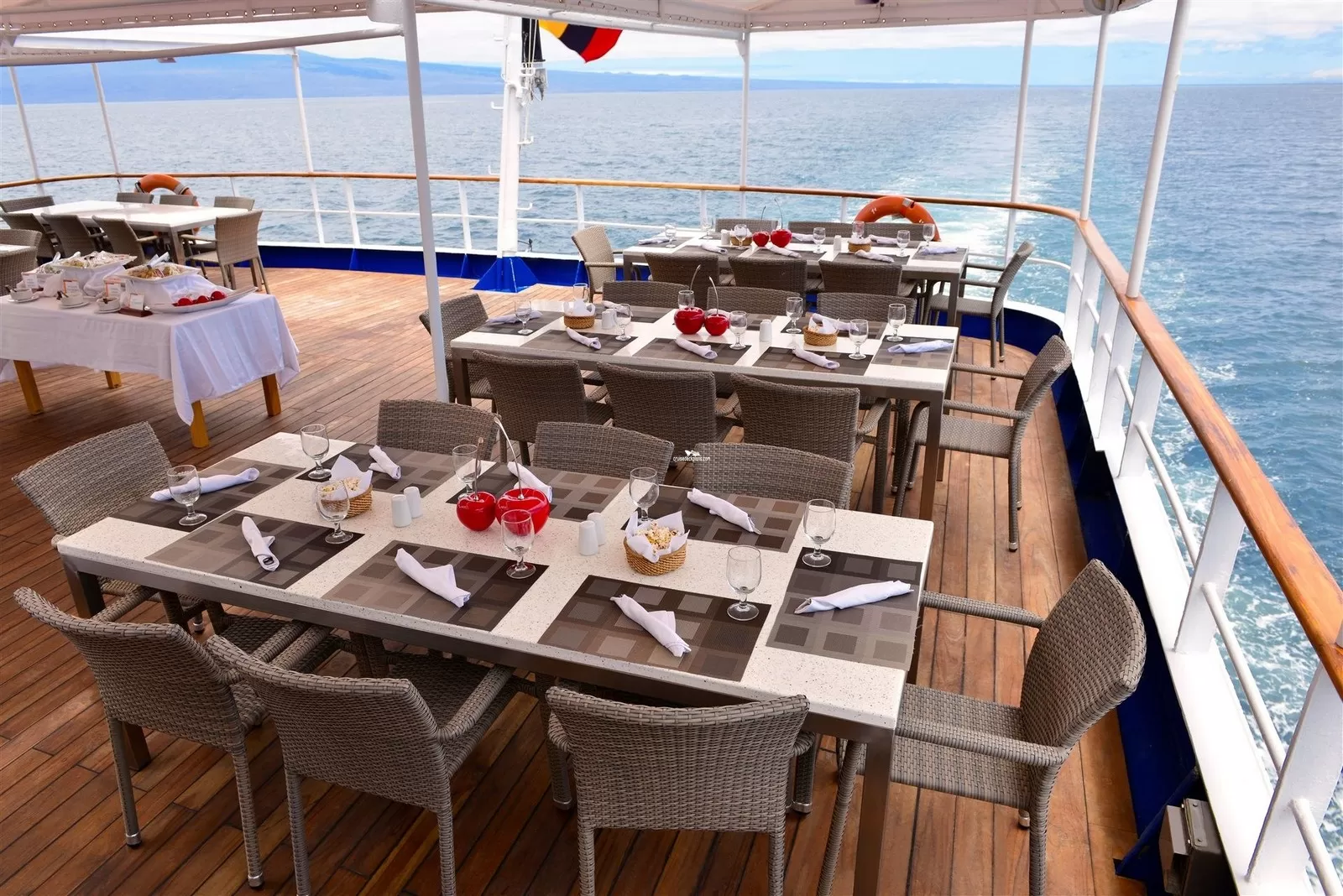 Celebrity Xperience is the only mid-size vessel in the Galapagos that serves a large proportion of its meals outside. Located at the stern of the ship, our al fresco dining area means that guests can savor a scrumptious meal with the islands' stunning scenery as a backdrop. The al fresco area also features a bar, which is open at lunchtime and in the evening.Lounge